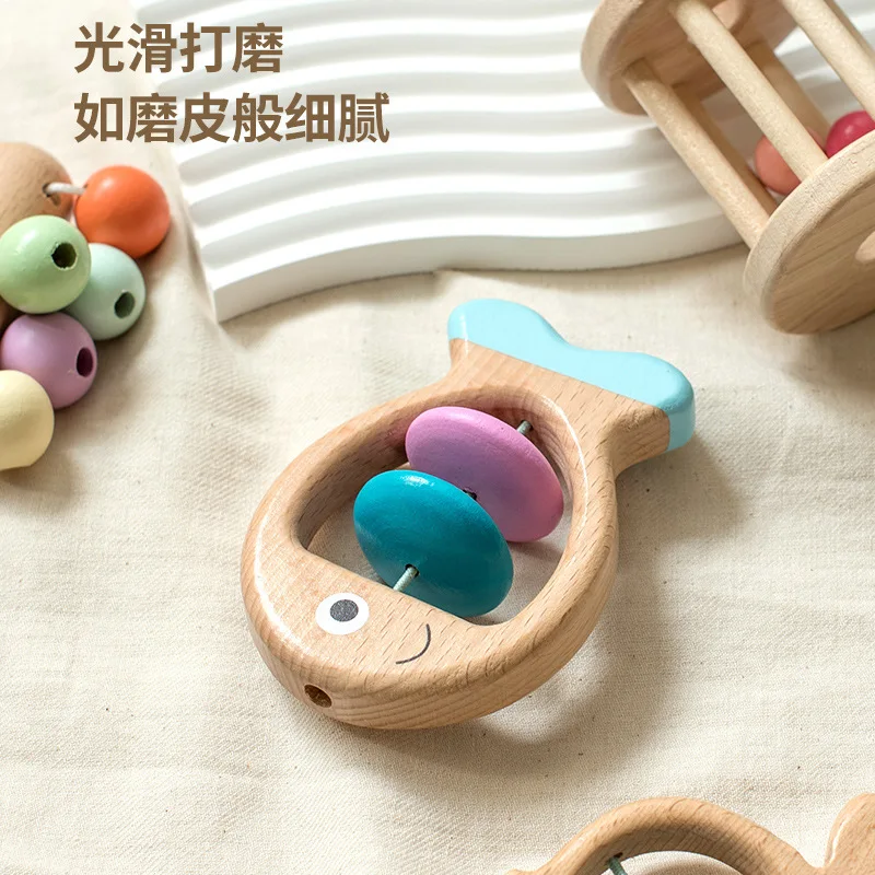 Wooden baby colorful hand rattle five-piece set crib bell music early education soothing musical instrument toy