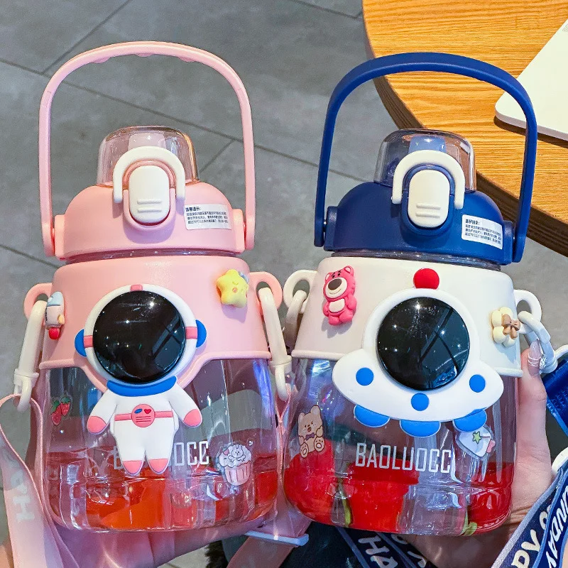1200ml Kids Cartoon Plastic Water Bottle Cute Children Outdoors Astronaut Water Bottle For Gift