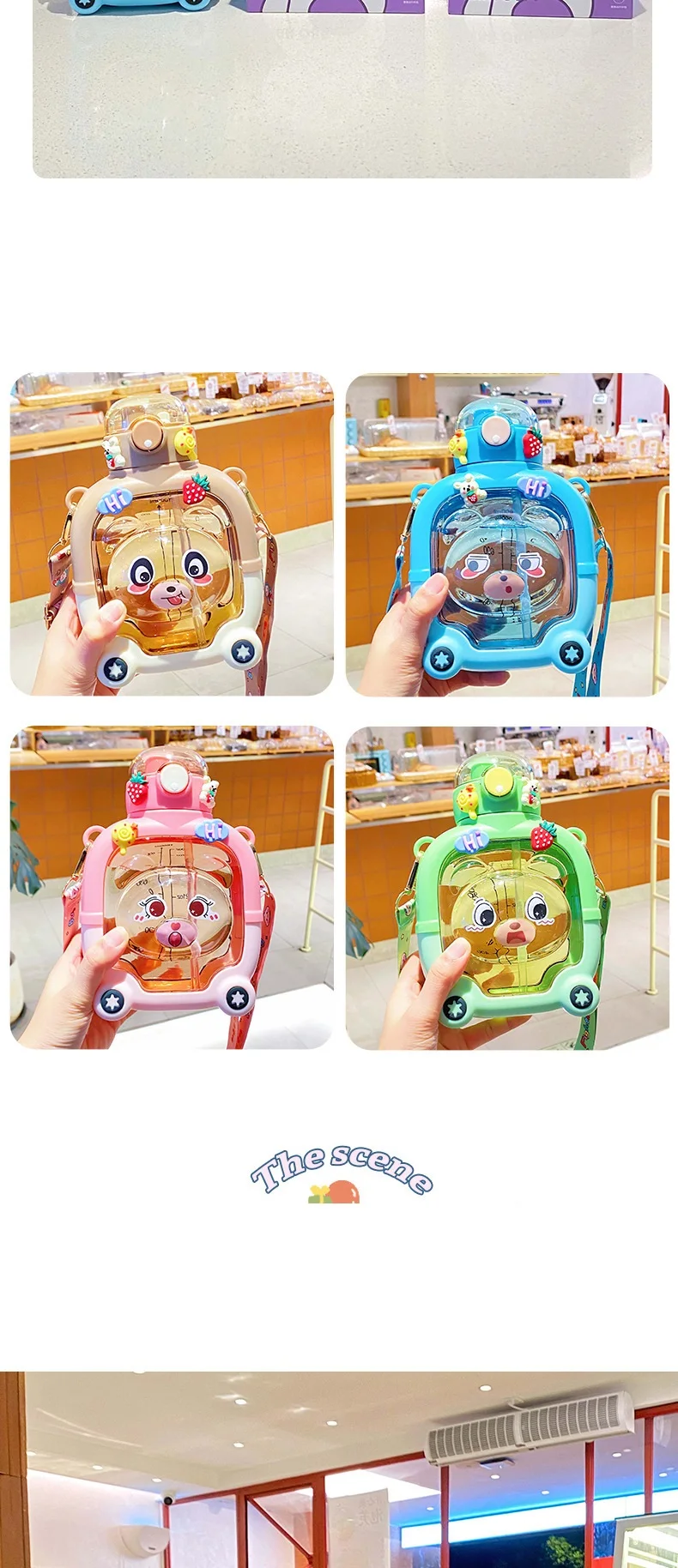 Description | Water Bottle Cartoon Straw Cup for Kids Children Portable Outdoor Drinking Bottle Summer Spray Bottles With Strap | |