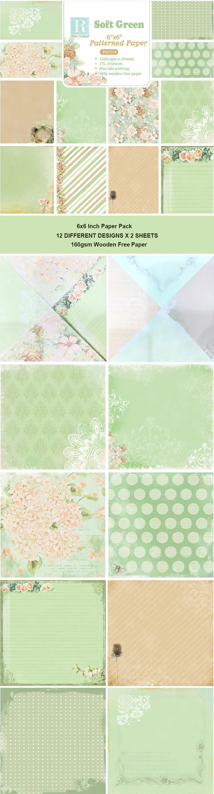 Products Name | GF Soft Green Cardstock Scrapbooking Paper Pack Designer Floral DIY Craft Hand Account Decorative Craft Paper Scrapbook Paper | |||||