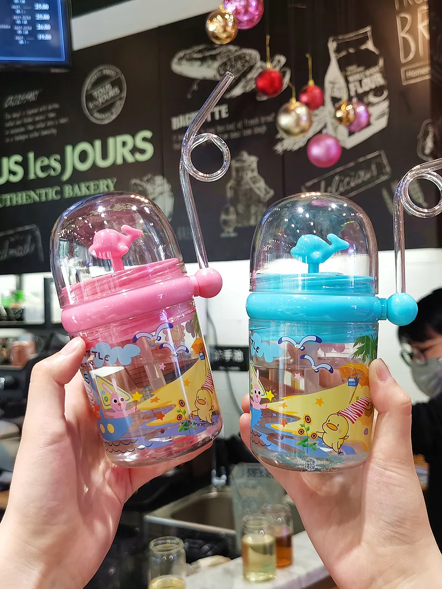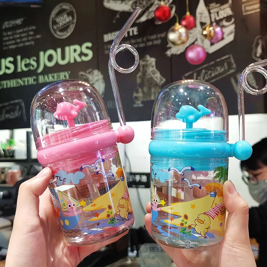 Whale spray cup student straw cute little dolphin children internet celebrity same style girl fountain cup