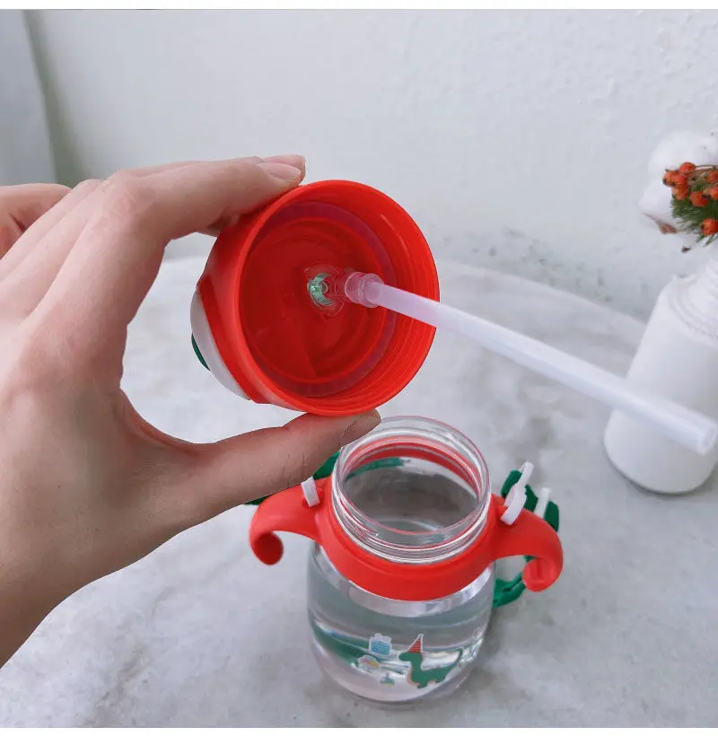Children's water cup with straw plastic anti-fall cup primary school student cartoon kindergarten handle portable kettle