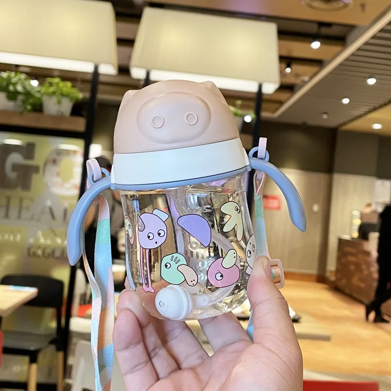 Baby learning drinking cup anti-leakage anti-choking straw cup children's water bottle drop-resistant with handle