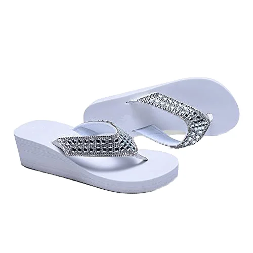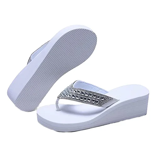 Bosirui Women's Platform Flip Flop Rhinestones Arch Support Comfortable Soft Cushion Wedge Flip Flops Summer Thong Sandals