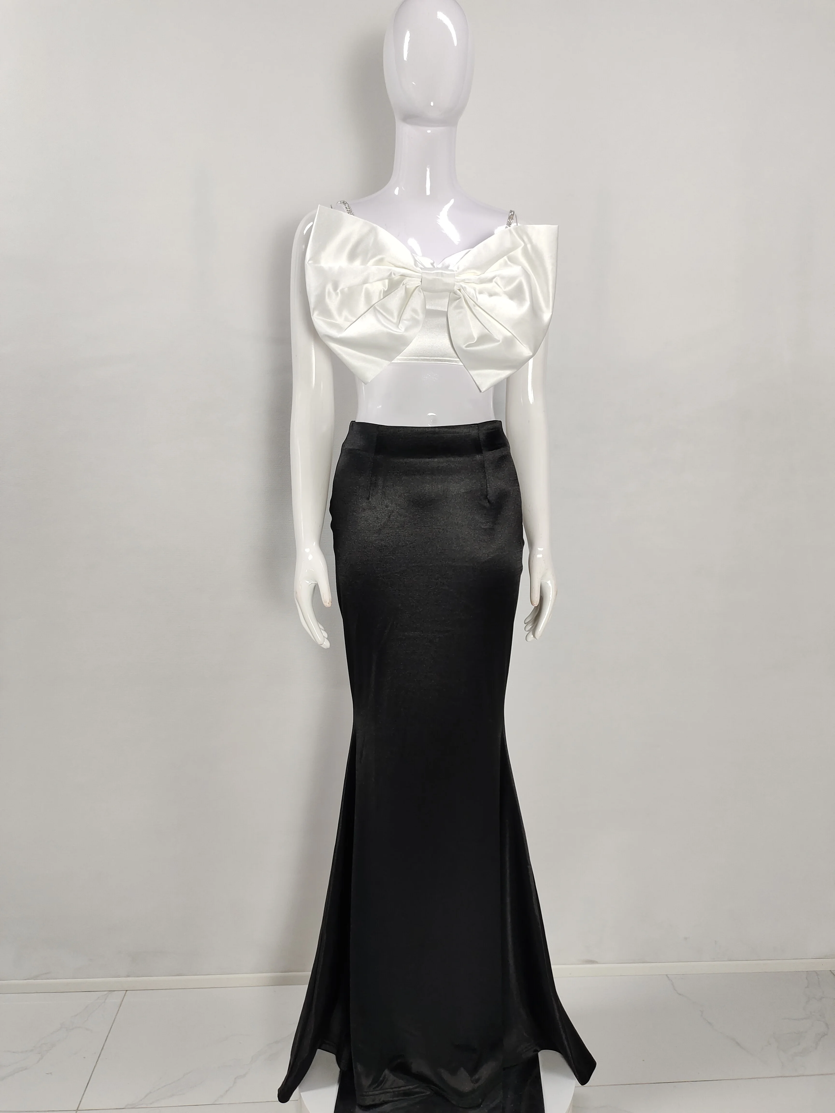 A9632 Fast Shipping Black White Women Two Pieces Suits Crop Tops Ladies Long Skirt Two Pieces Suit