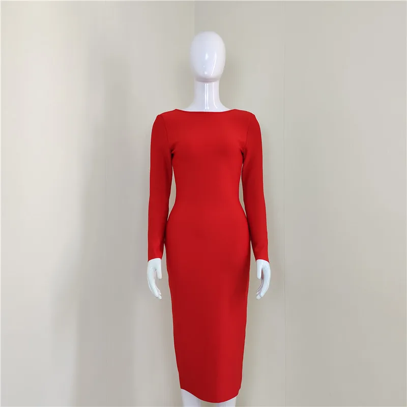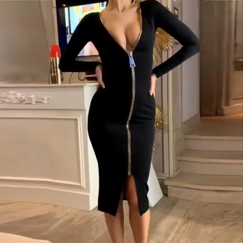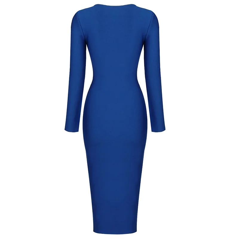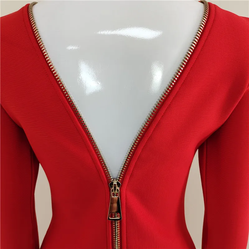 Chic Long Sleeve Bodycon Evening Gown in Blue Red Black Women s Fashion Dress with Big Zipper