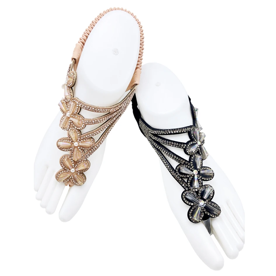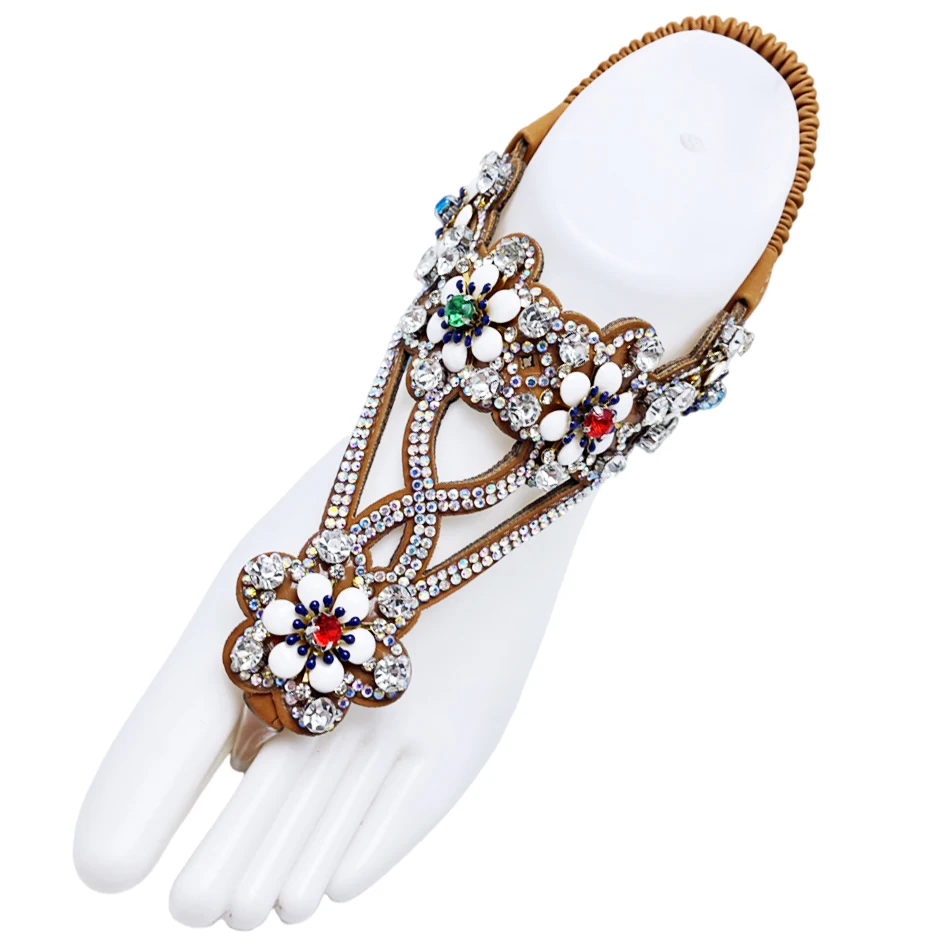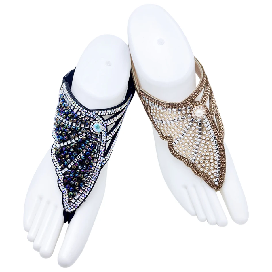 Bosirui High Quality Bling Accessories Rhinestone Sandal Upper Rhinestone Strap Flat Decorative Upper For Lady flipflop straps