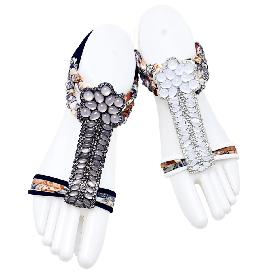 Bosirui rhinestone shoe uppers wholesale shape crystal flipflop straps decoration shoe accessories for flat sandals decoration