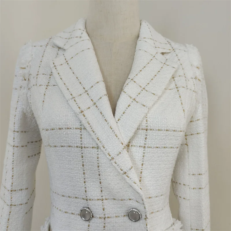 Fashionable White Tassel Winter blazer for Women Designer Coat with Long Sleeves