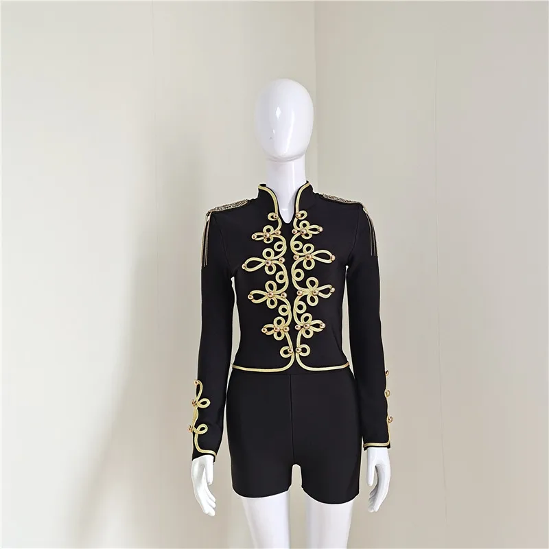 C1767 New Knight Style Long Sleeve Fashion Beaded Top Forl Women Casual Wear Tassel Black Women bodycon Top