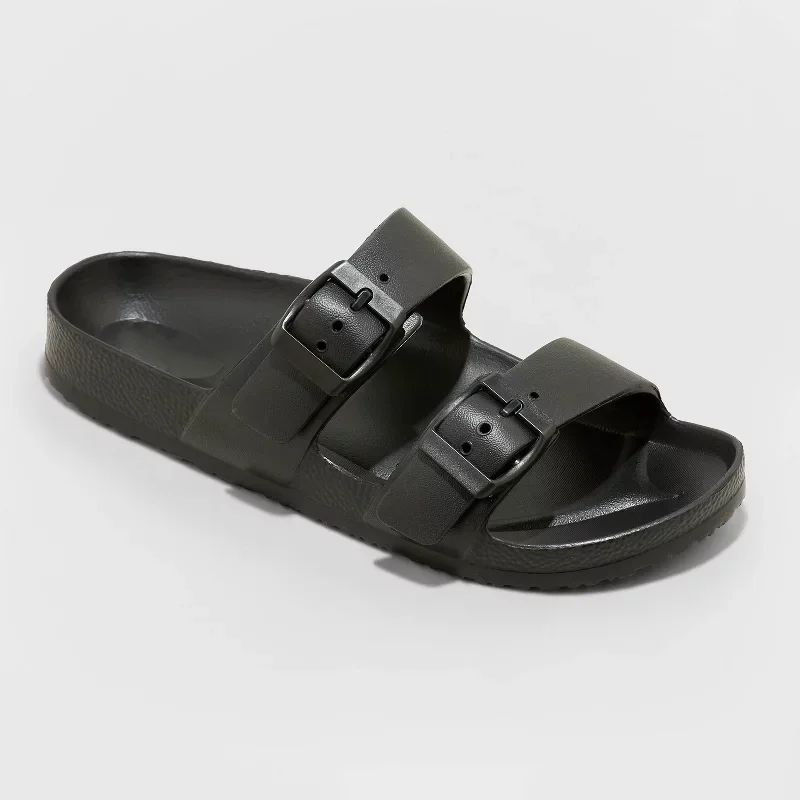 Bosirui Custom Logo Summer Flat Sandals Women Adjustable Buckle Casual Black EVA Slippers PU Insole Soft Outdoor Slides Platform