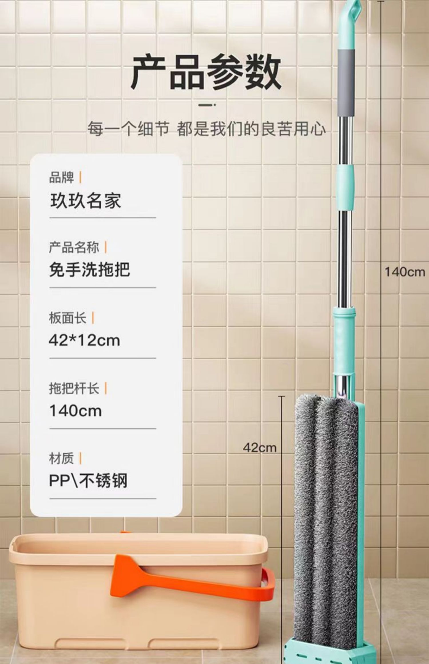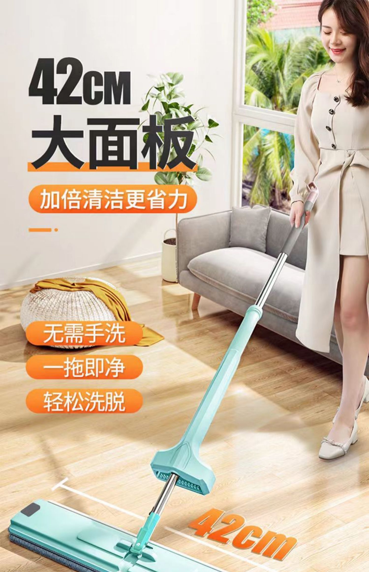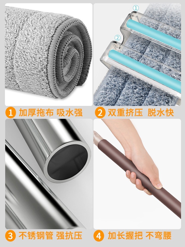 upgraded hand wash-free flat mop +4 cloth reinforced panel★strengthening rod