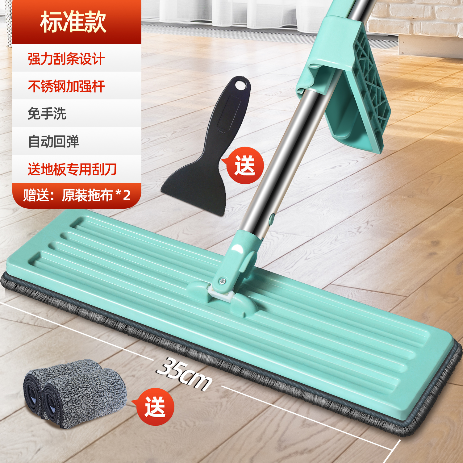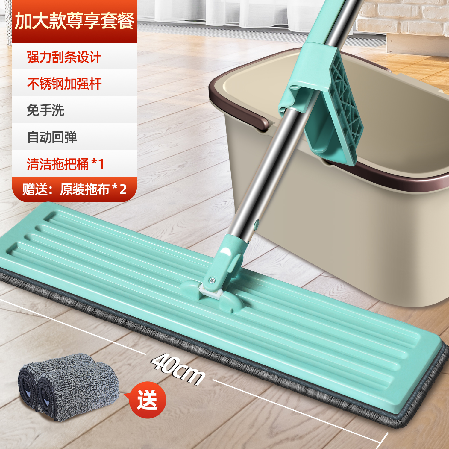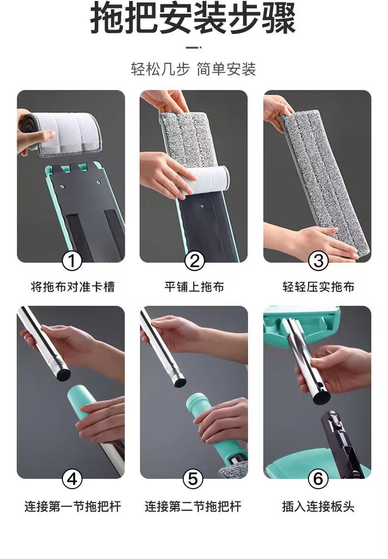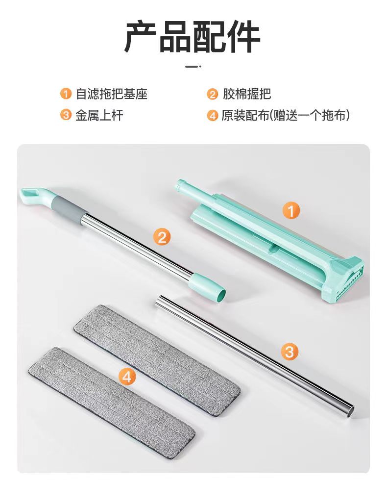 upgraded hand wash-free flat mop +2 cloth reinforced panel★strengthening rod