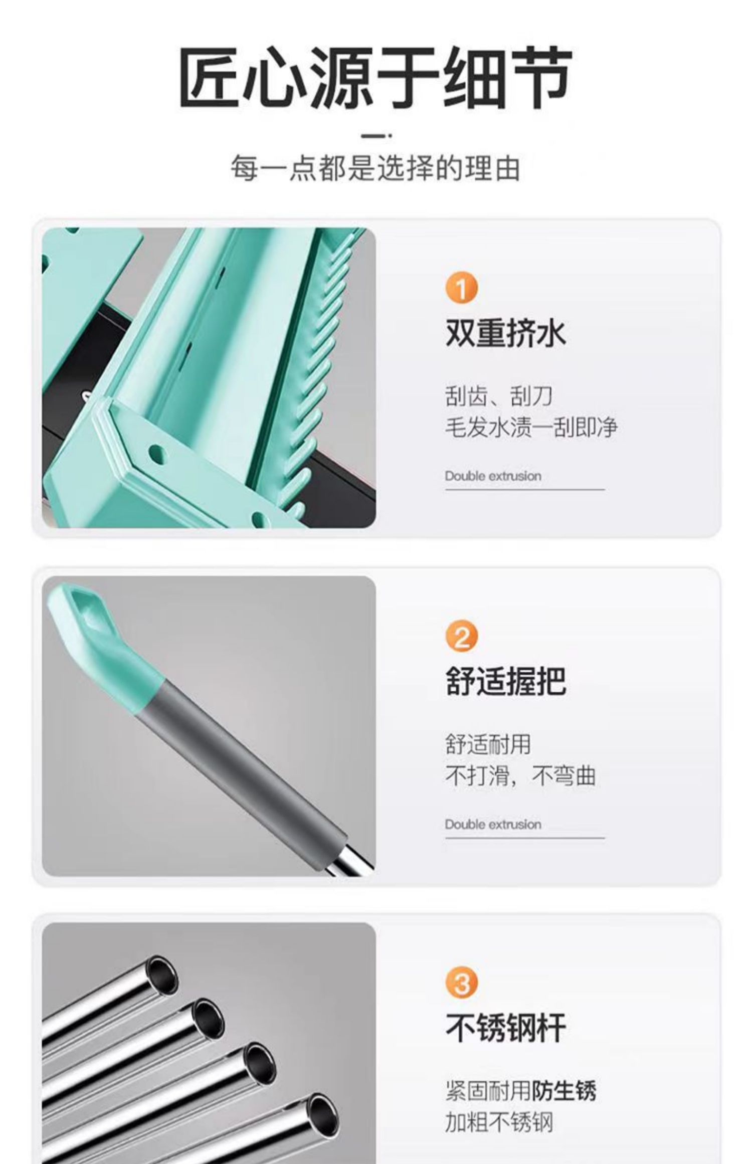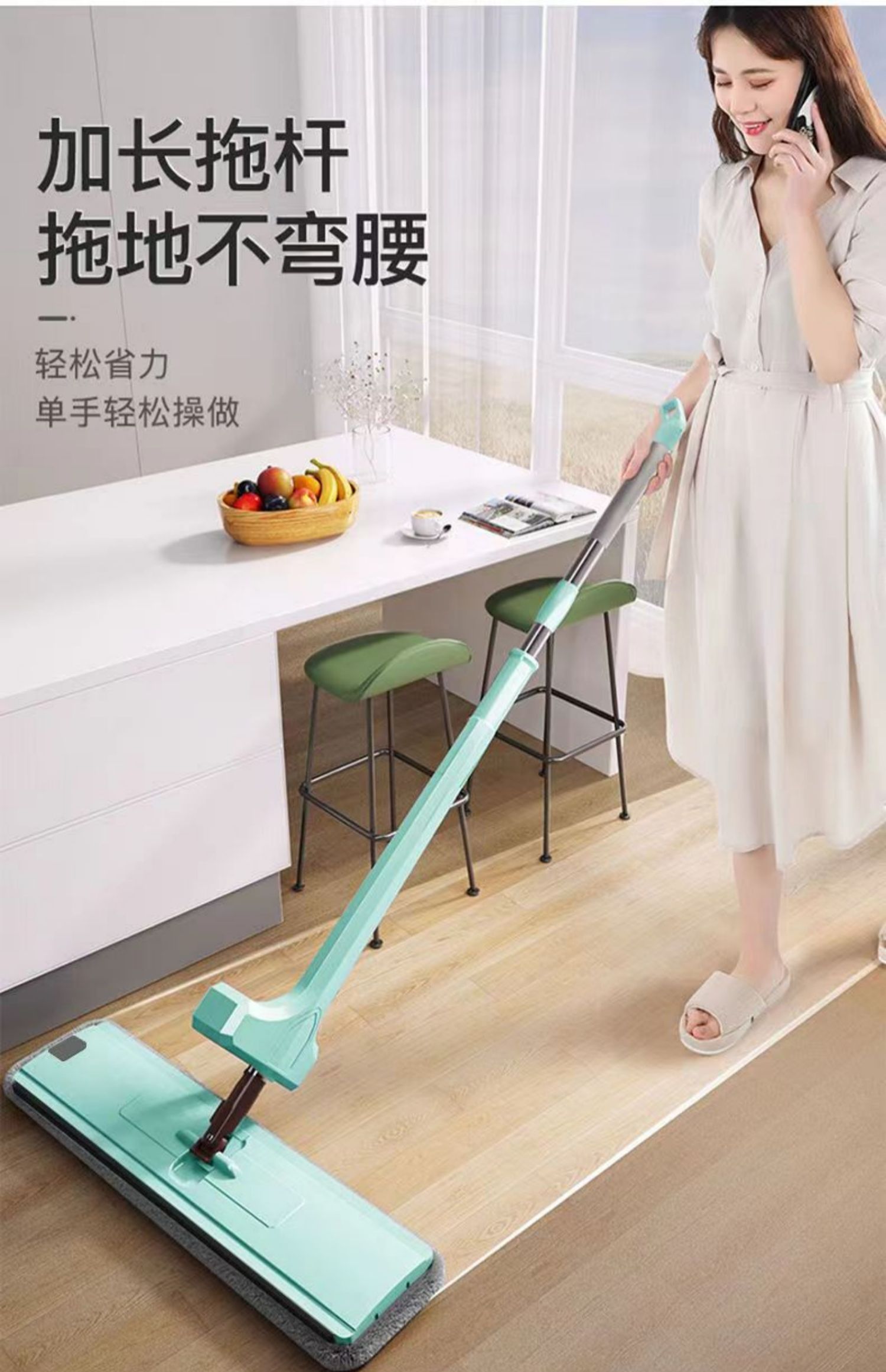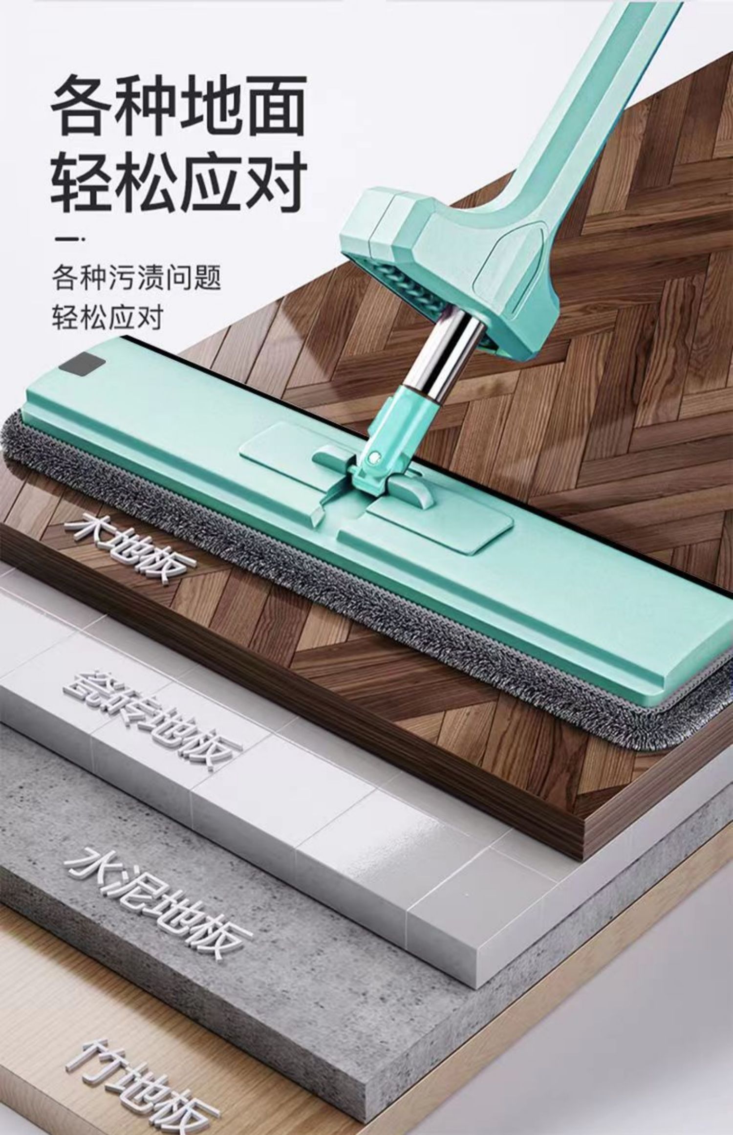 upgraded hand wash-free flat mop +2 cloth reinforced panel★strengthening rod