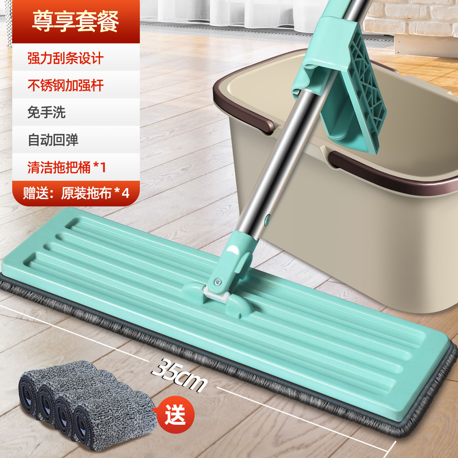 suit three flagship flat mop +4 pieces of cloth + cleaning bucket