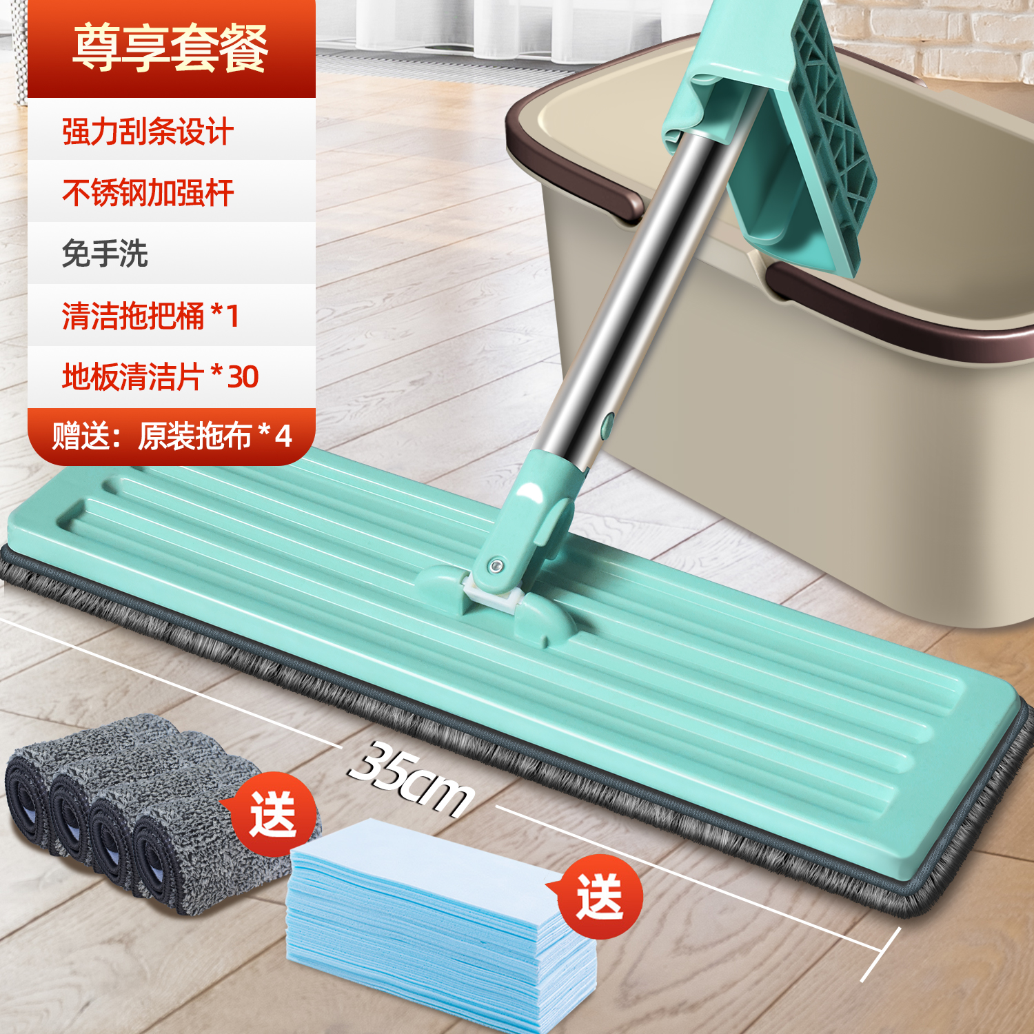 suit five upgraded flat mop +4 pieces of cloth + cleaning plate 30 pieces