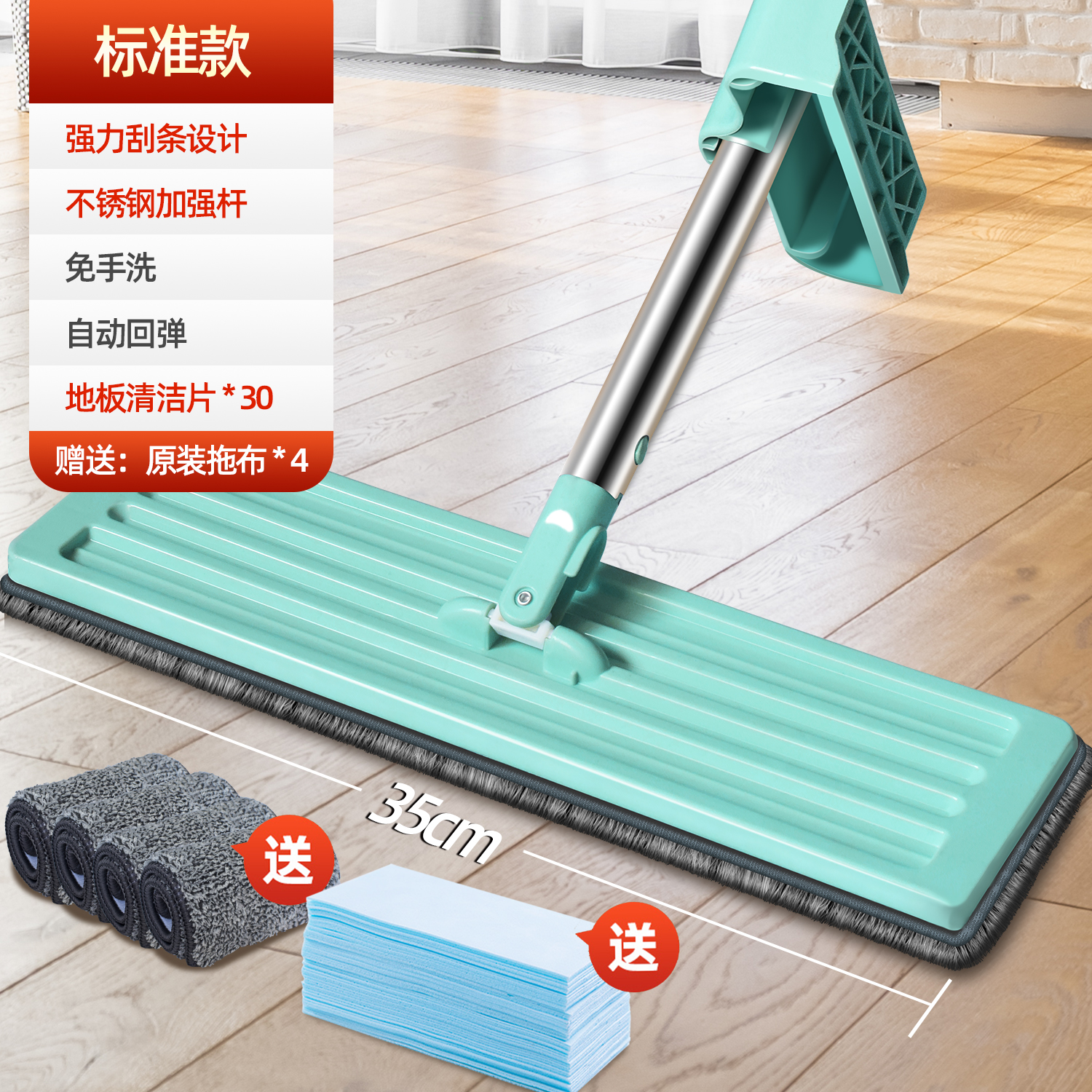 flagship hand wash-free flat mop +4 pieces of cloth★lengthened plus size panel