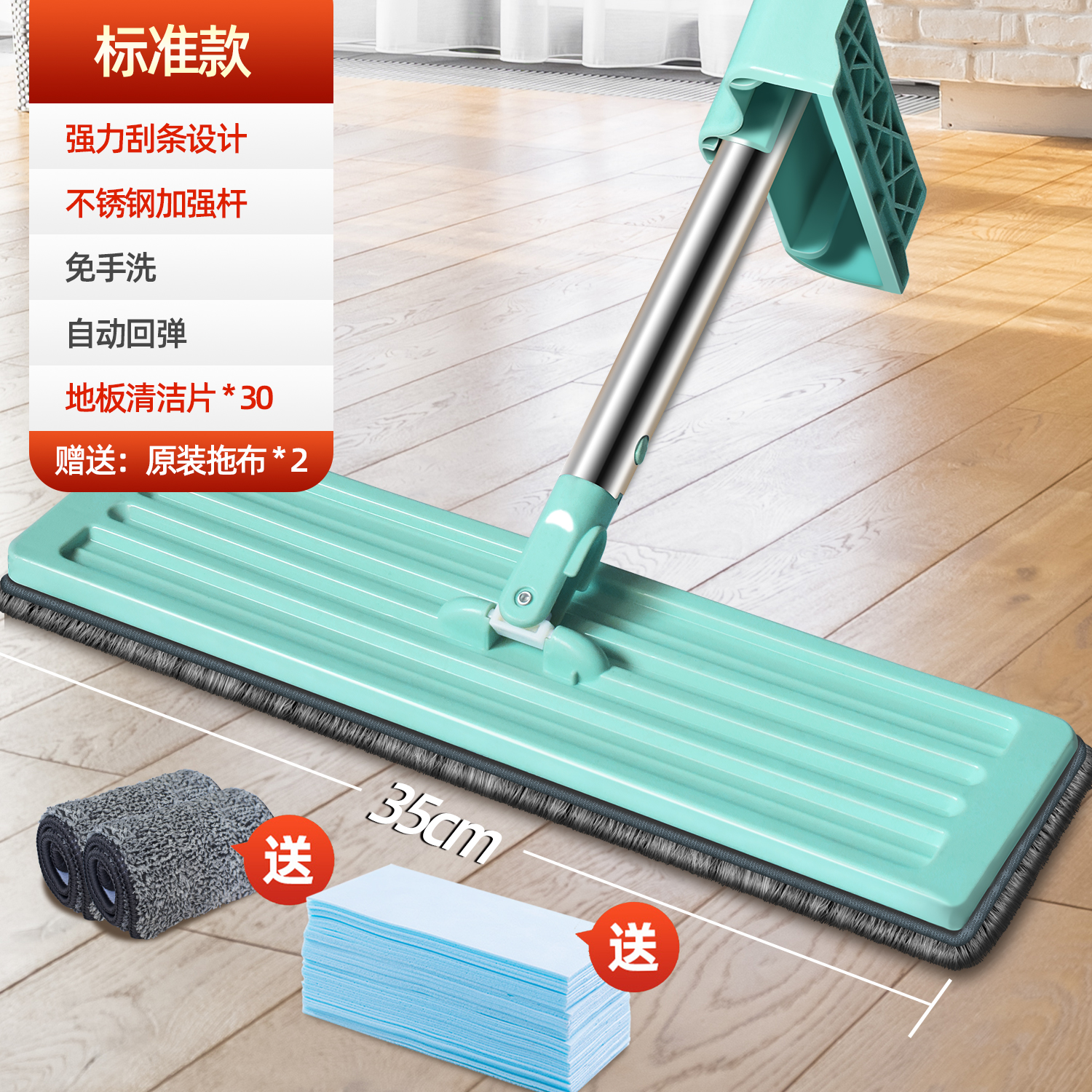 flagship hand wash-free flat mop +2 pieces of cloth★lengthened plus size panel