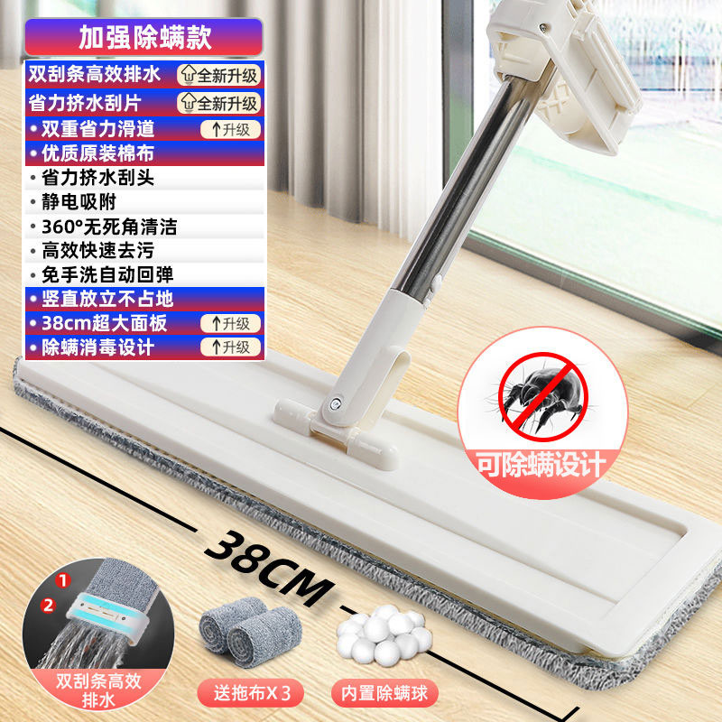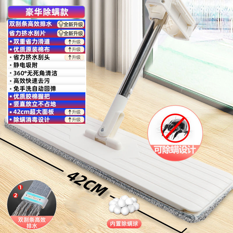luxury double scraping anti-mite hand wash-free flat mop +1 piece of cloth