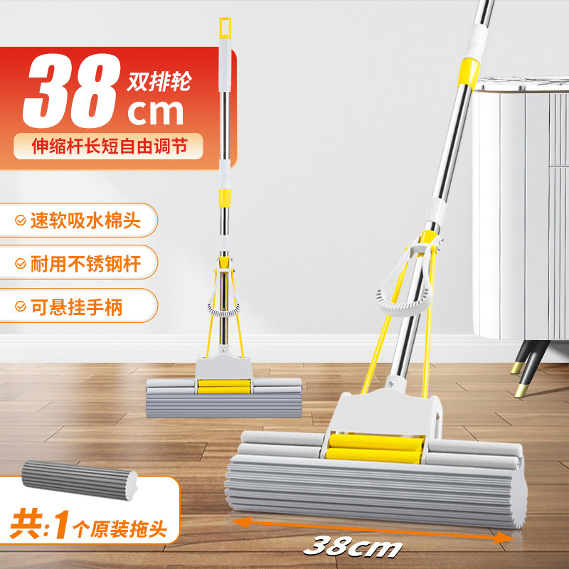 [telescopic rod] 38cm two-row wheel mop [2 original heads in total]]