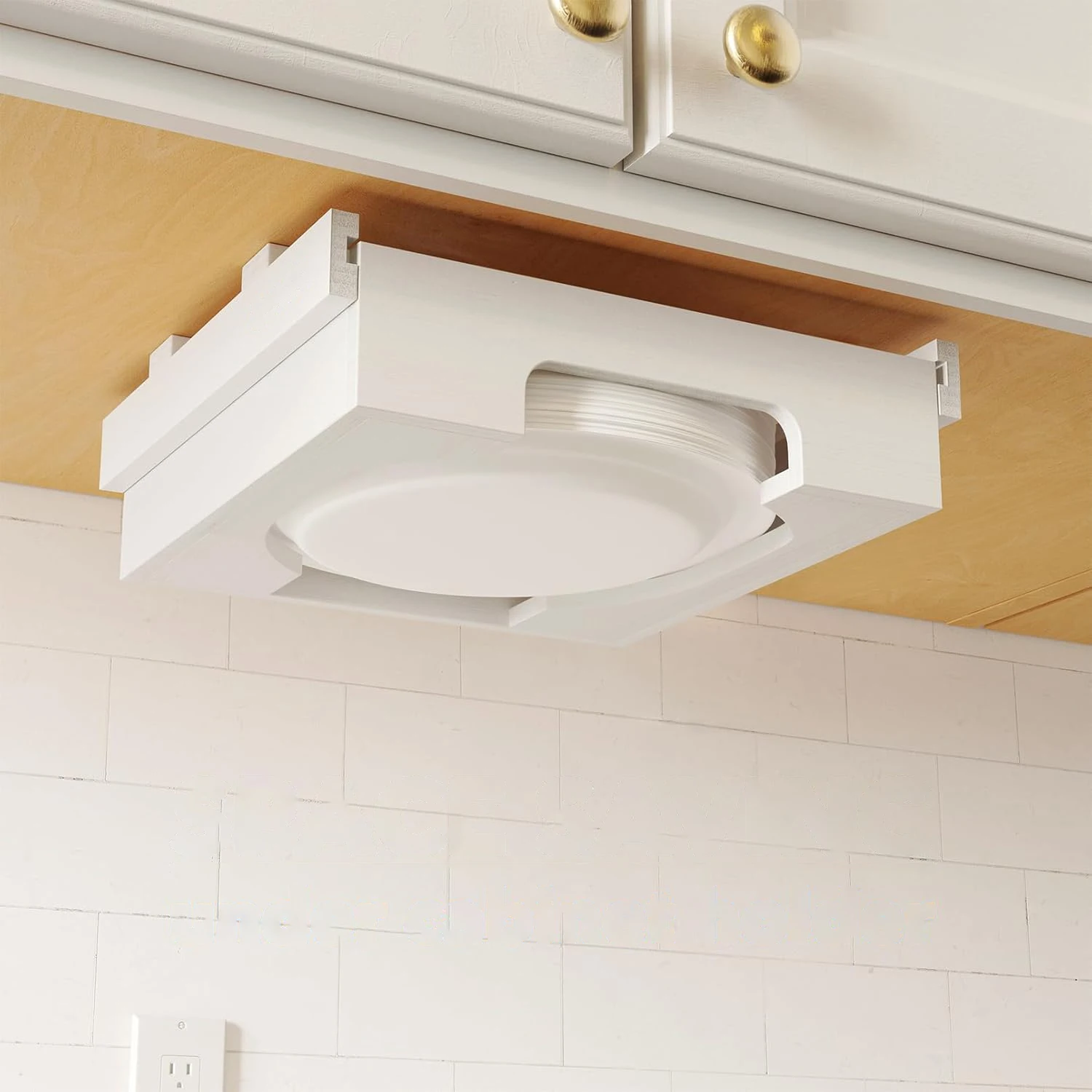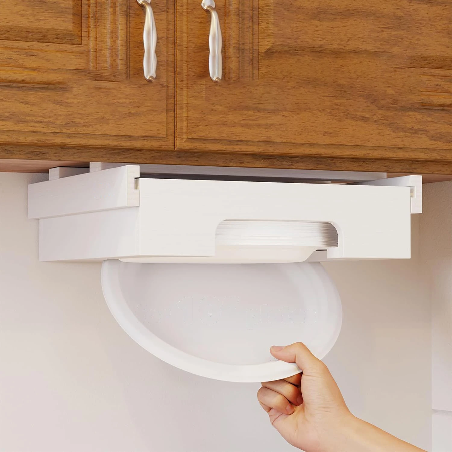 Organize Kitchen Bamboo Under Cabinet Plates Holder Counter Vertical Paper Plate Dispenser