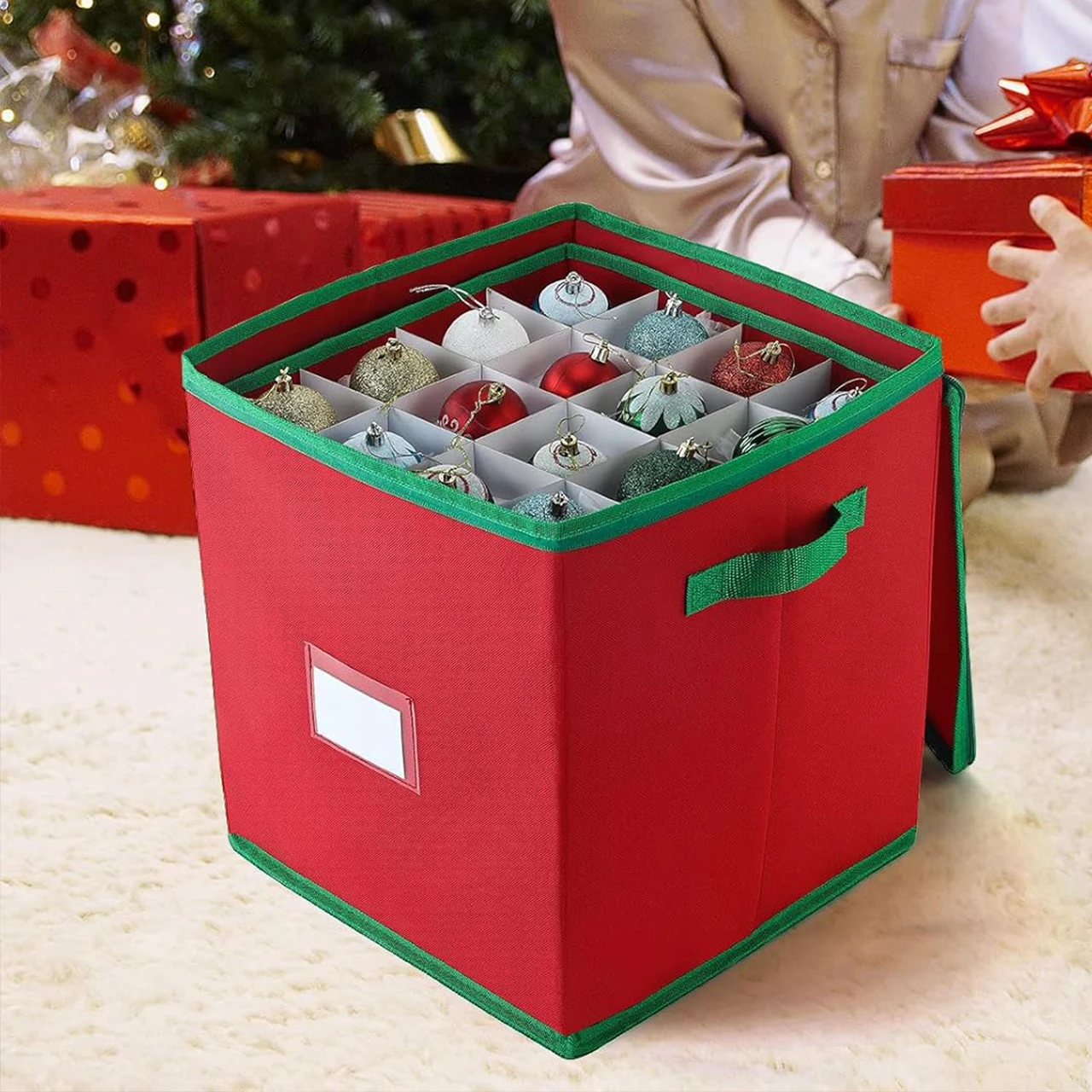 Large Capacity Christmas Ornament Storage Box Holiday Decor Storage Containers With Separate Removable Trays