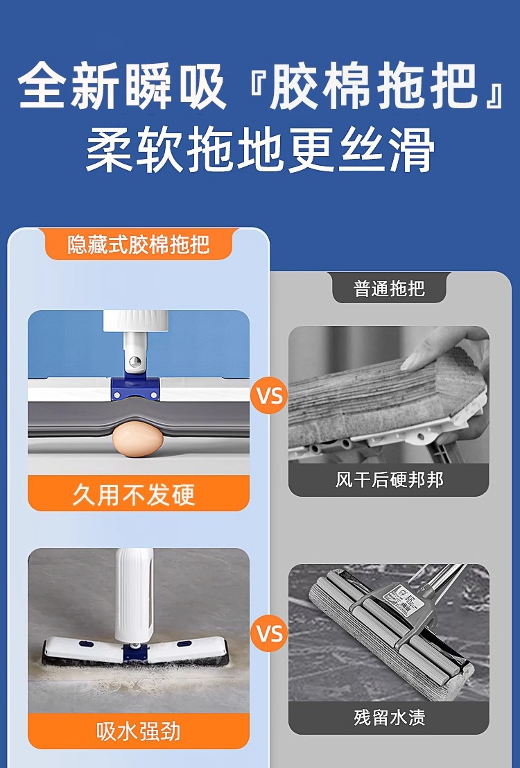 hot sale⭐[32cm instant suction collodion cotton head] 2 heads + free mop clip + can be hidden