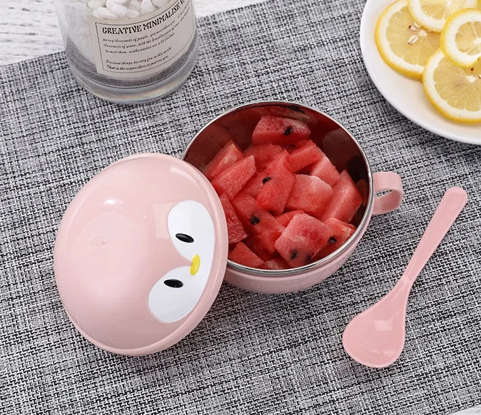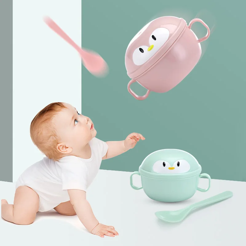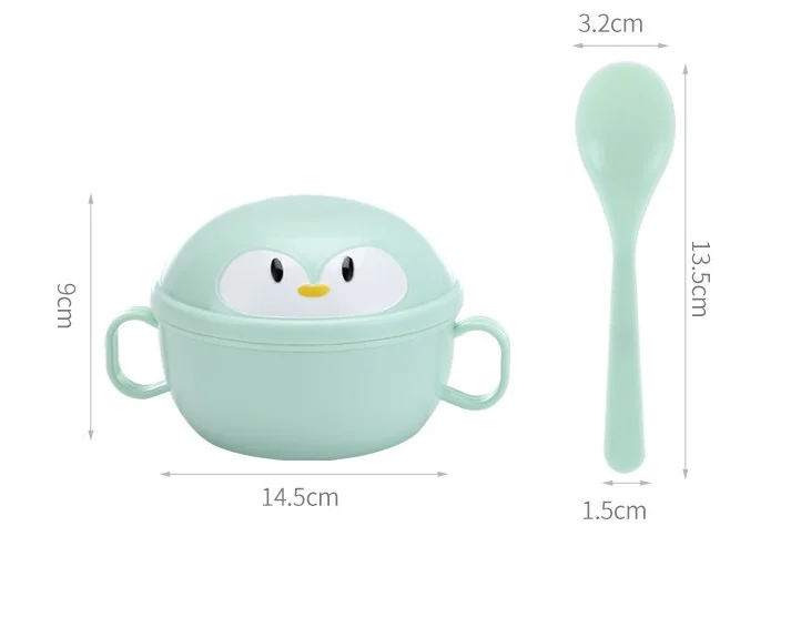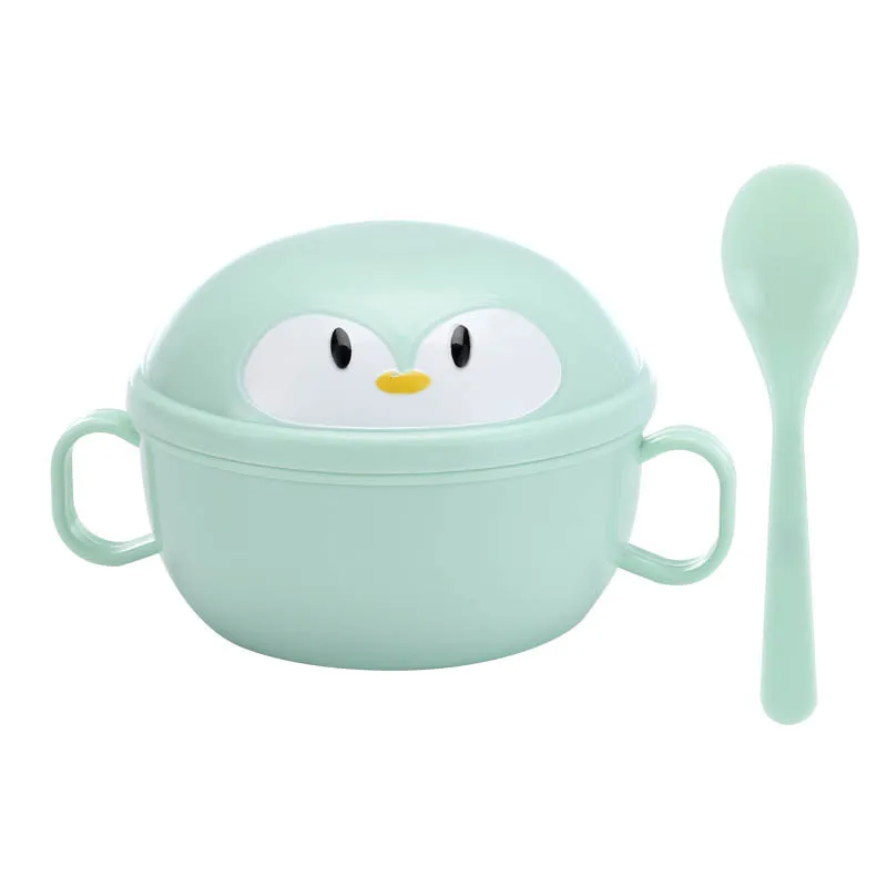New Penguin Cartoon Children's Tableware Stainless Steel Double-Ear Bowl Insulated Food Bowl