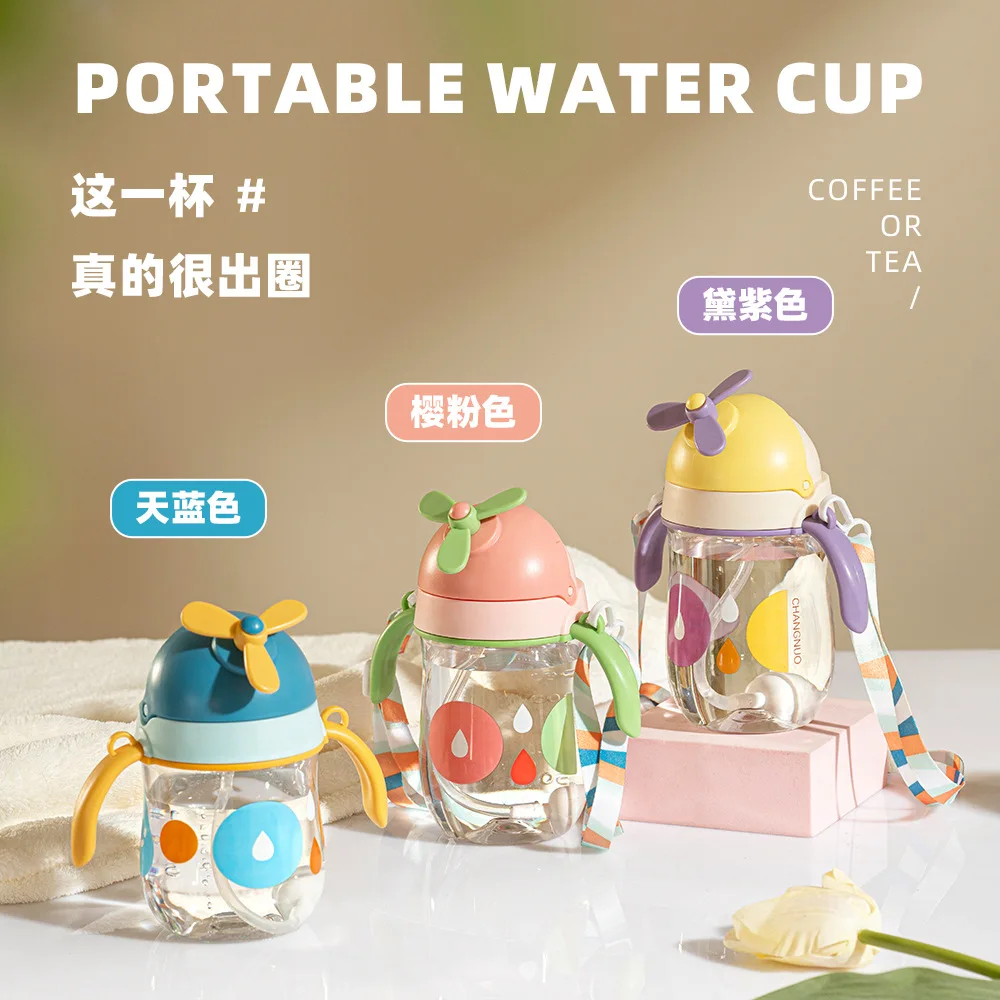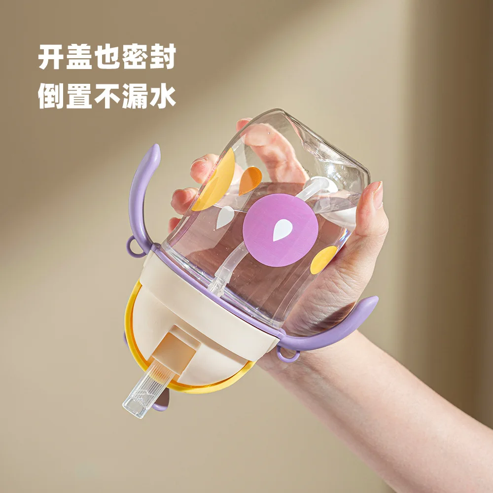 New sippy cup baby airplane head big baby bottle drinking water with straw learning cup dual-purpose children's water cup