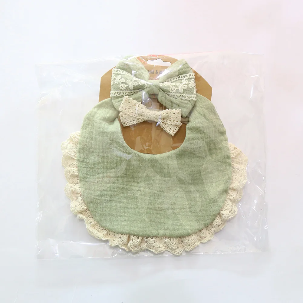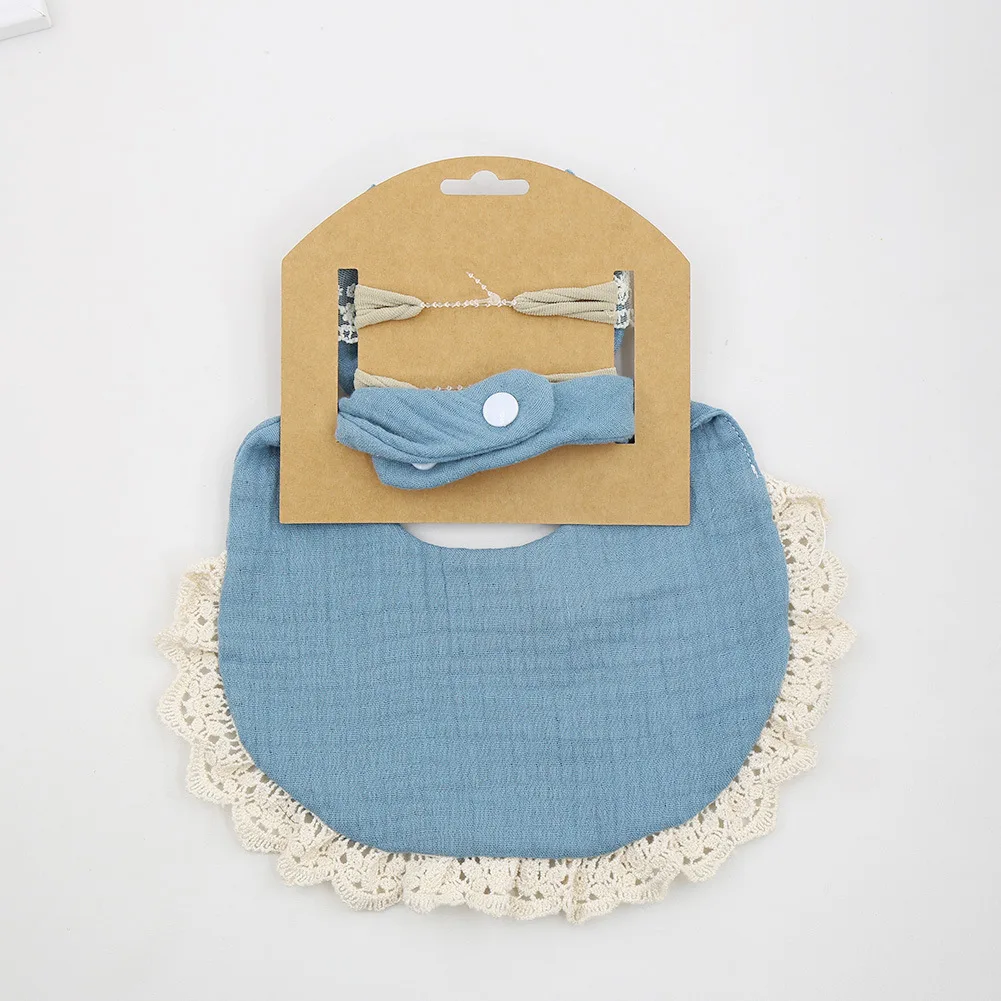 3Pcs/Set Solid Color Muslin Cotton Baby Bibs +Headband Lace Cloth Feeding Bib For Babies Towel Saliva Towel Burp Drool Bavoir