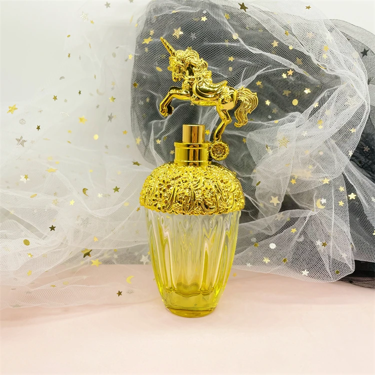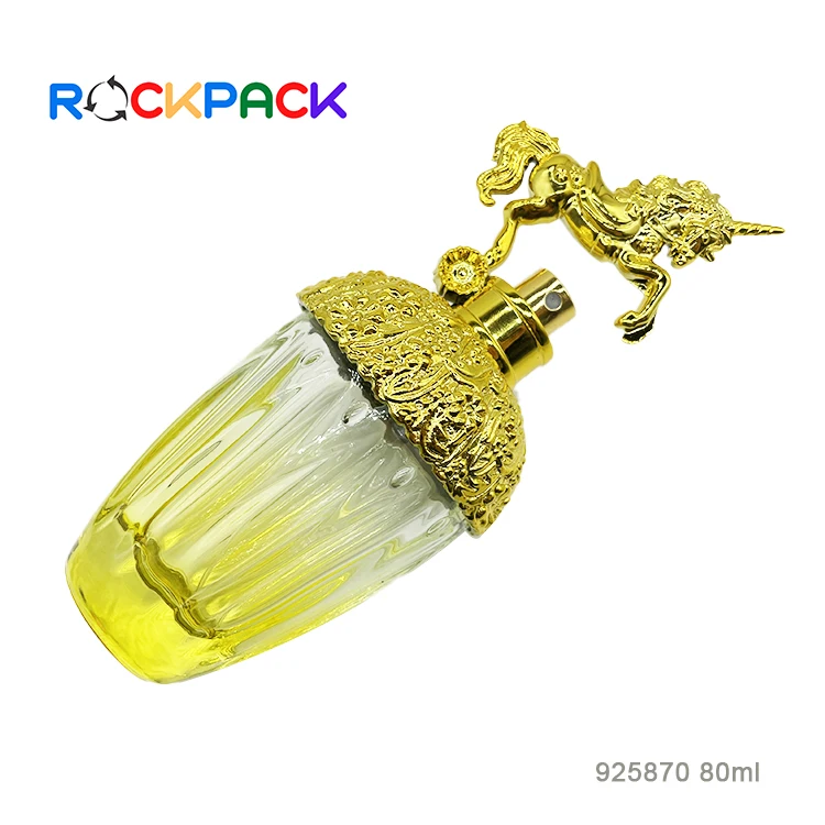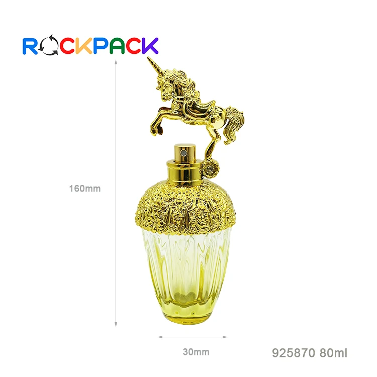 80ml Luxury wholesale custom spray pump perfume bottles with golden horse cap