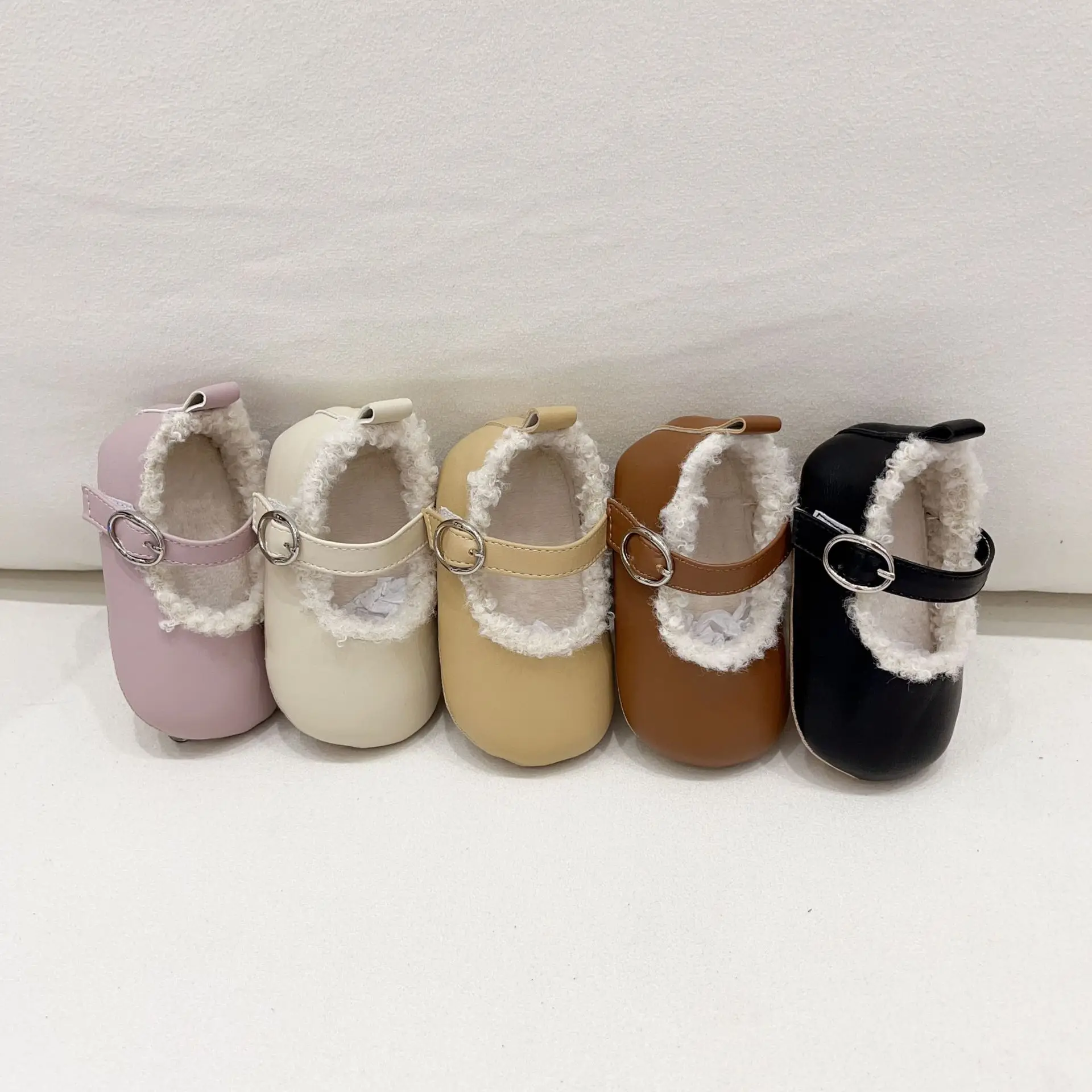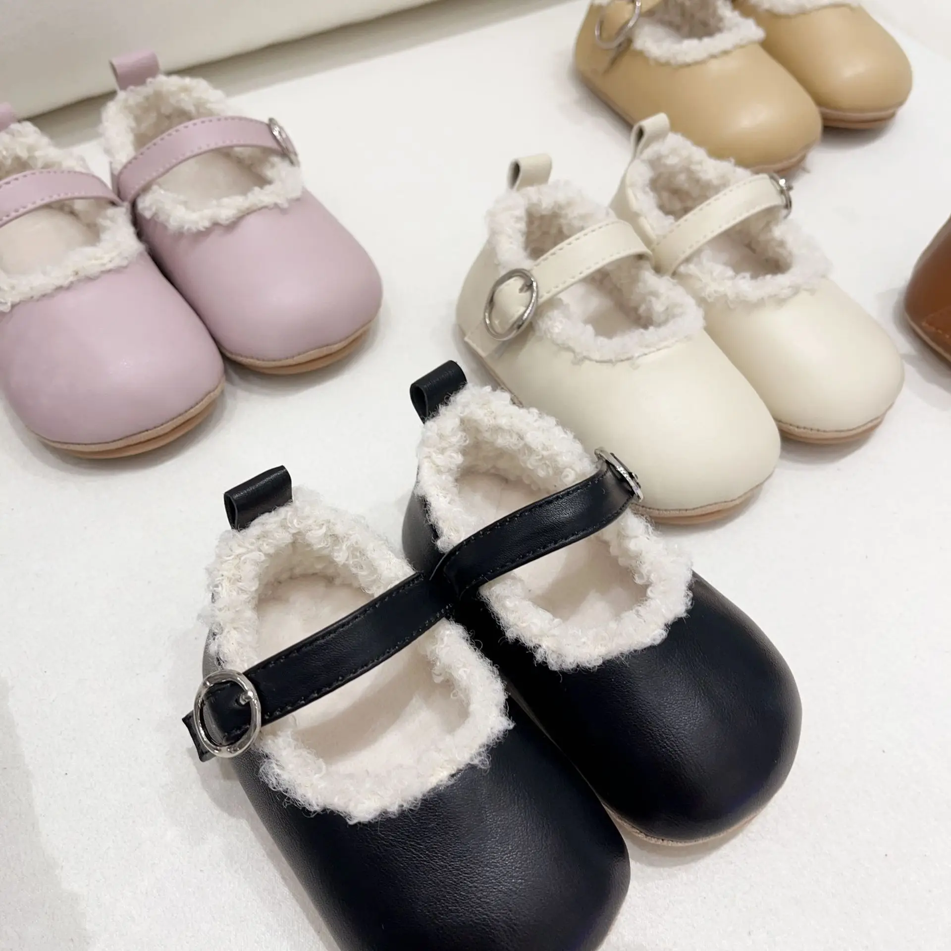 Winter baby girl's shoes plus velvet to keep warm baby soft-soled shoes solid color cotton shoes