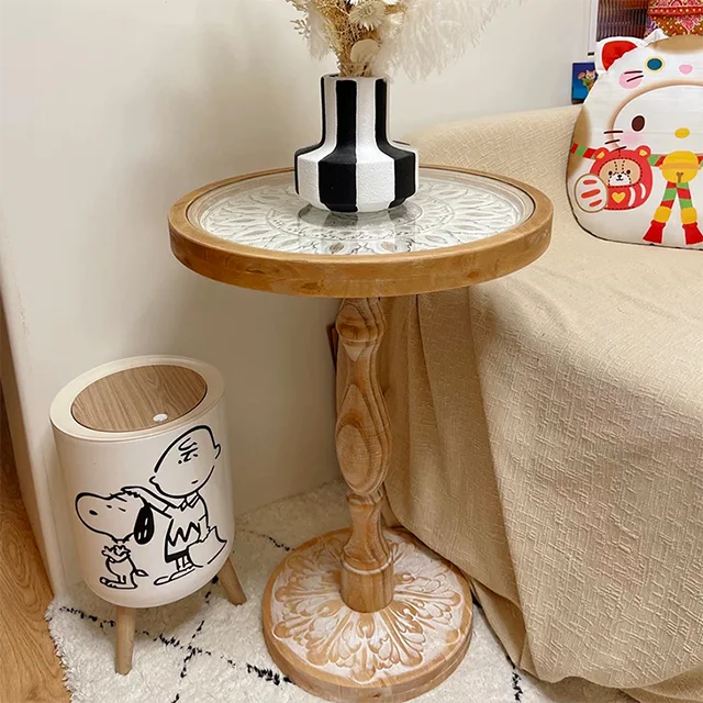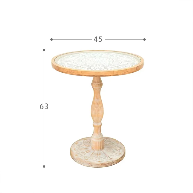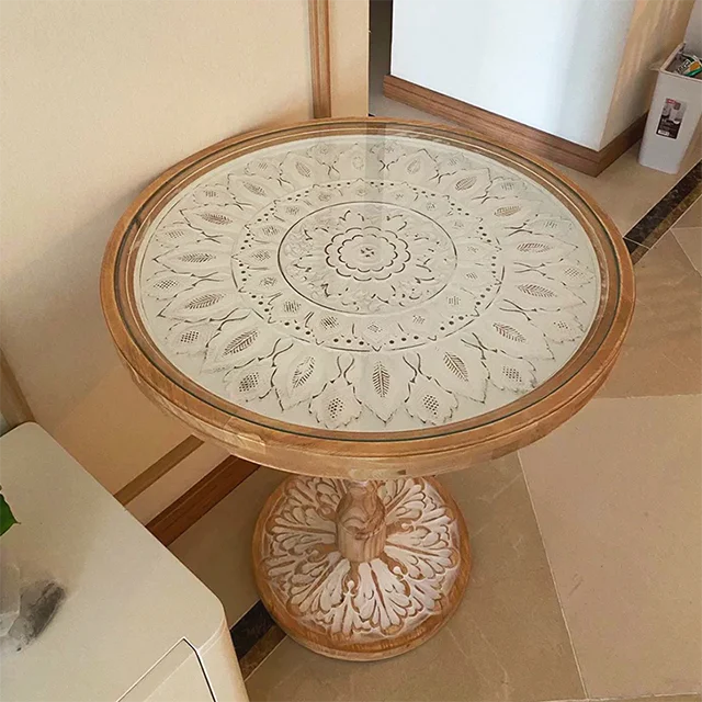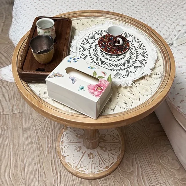 French Vintage Solid Wood Coffee Table Carved Moroccan SideTable for Home Dining Casual Moroccan Homestay Center Table Setsize:45*45*63