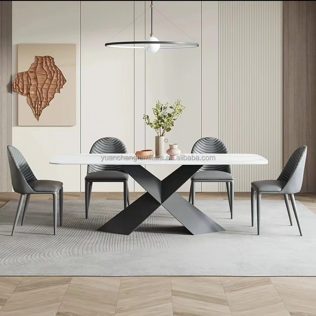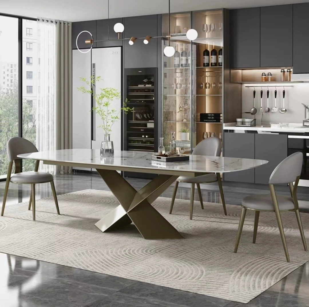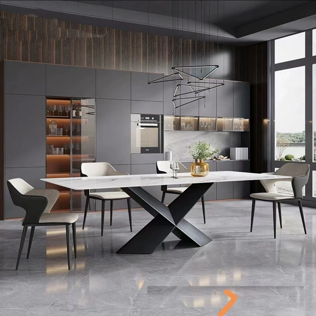 Marble Table Italian Modern Luxury Esstische X base Rectangle A Manger Complet Dining Room Furniture Table Dinning And Chair Set