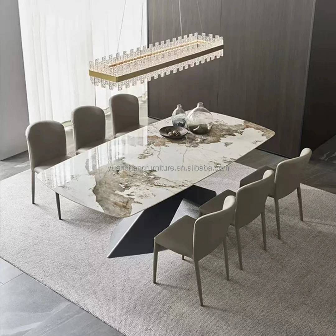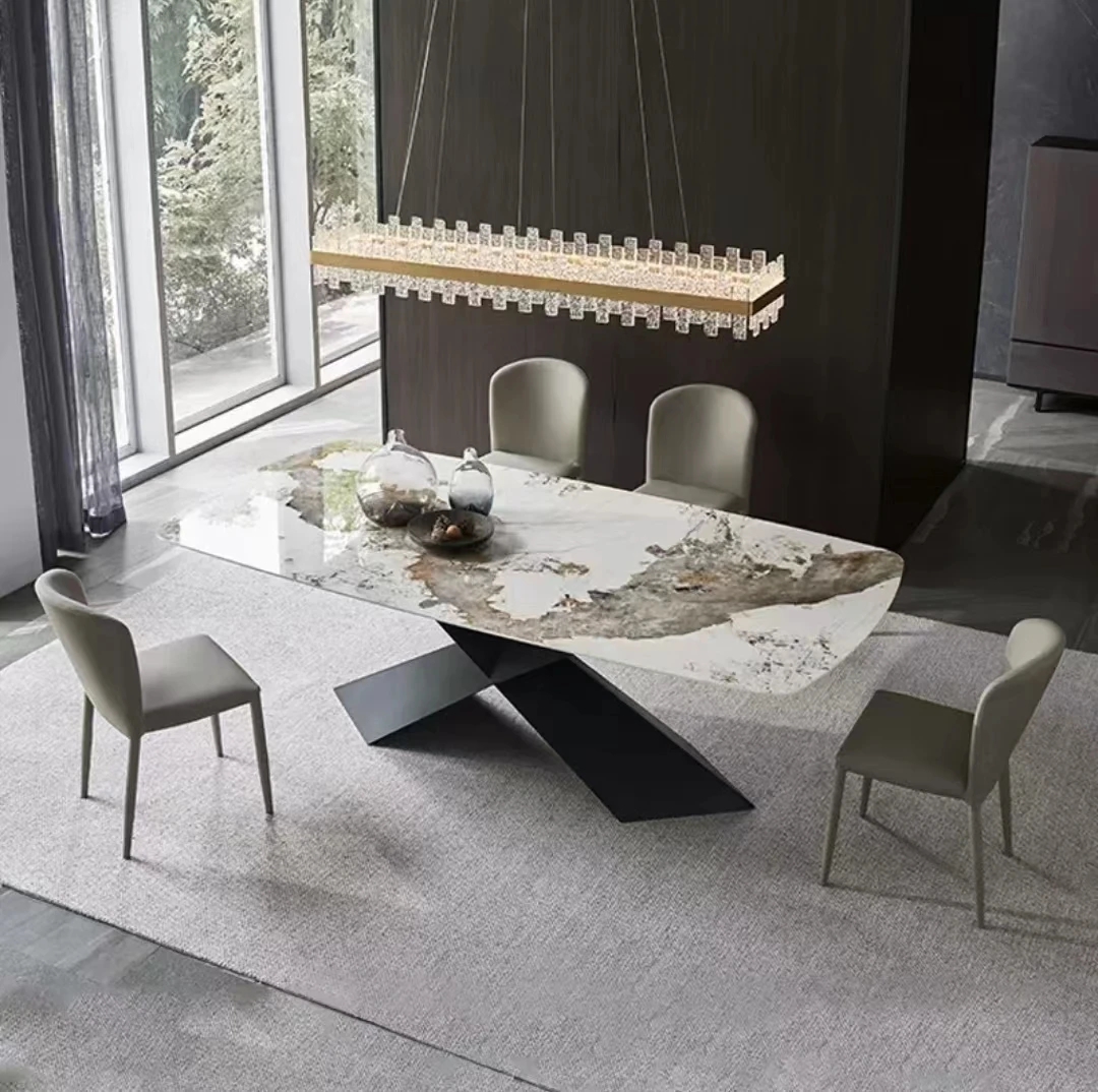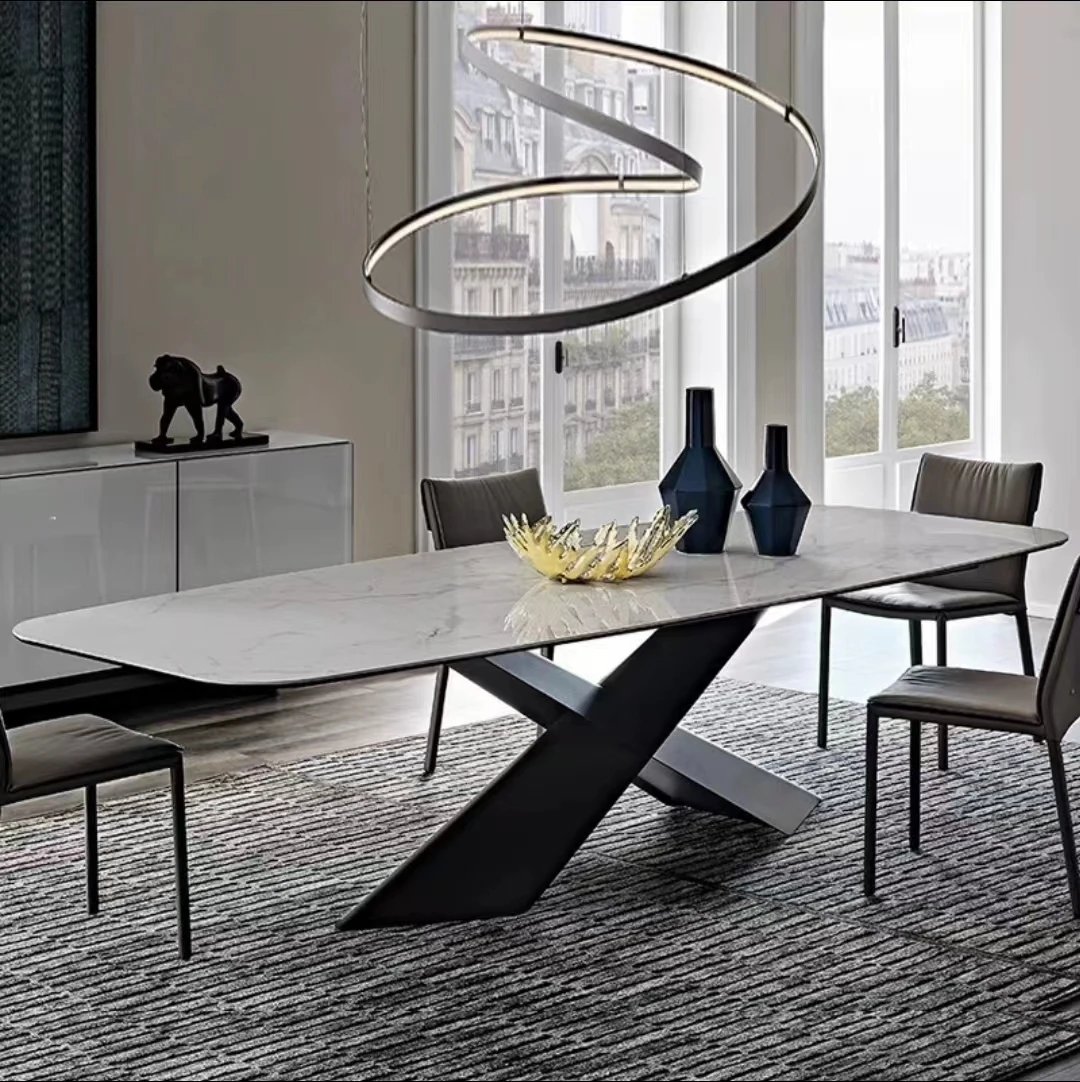 Marble Table Italian Modern Luxury Esstische X base Rectangle A Manger Complet Dining Room Furniture Table Dinning And Chair Set