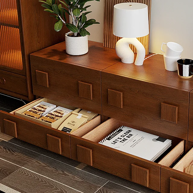 Modern Retro DIY Modular Wooden Cabinet Combination TV Stand for Living Room Sofa Storage Edge Cabinet Bedroom Bedside Table Use