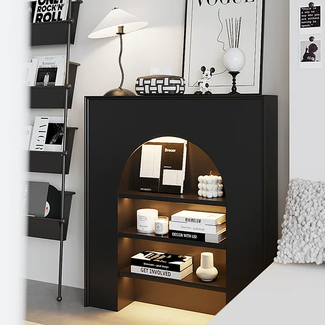 Modern lighting arched fireplace cabinet wooden home furniture, suitable for hotel, living room, bedroom decoration