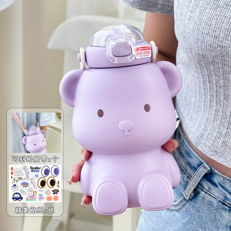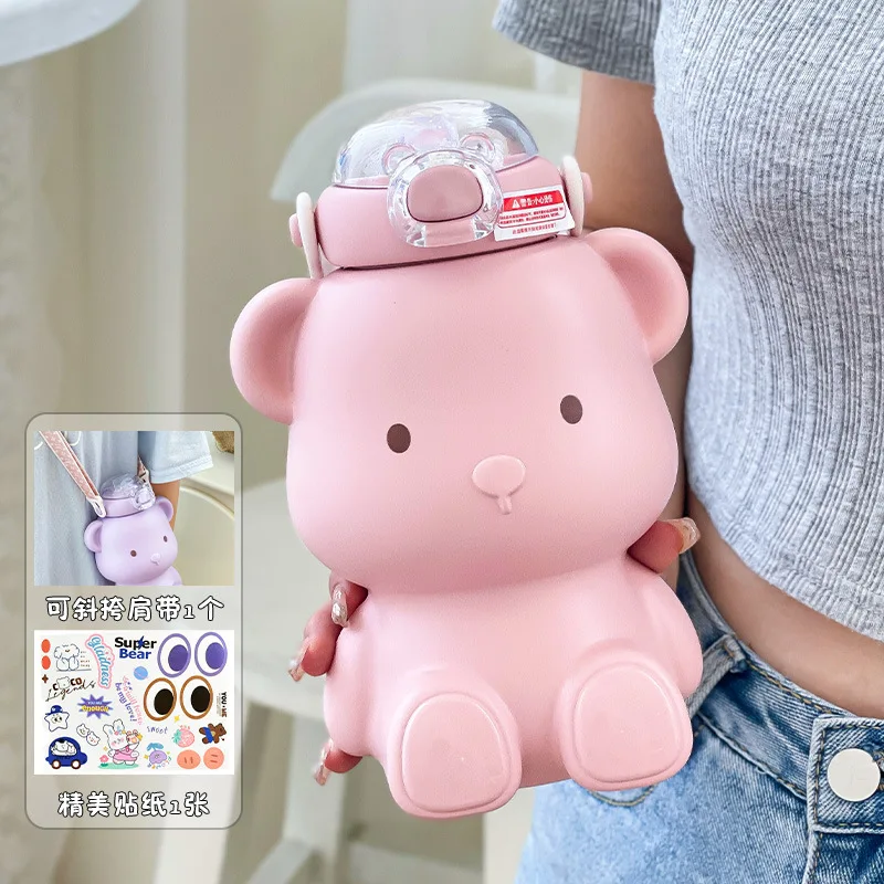 Bear children's water cup for school special food-grade 316 thermos cup women's straw cup boy's kettle