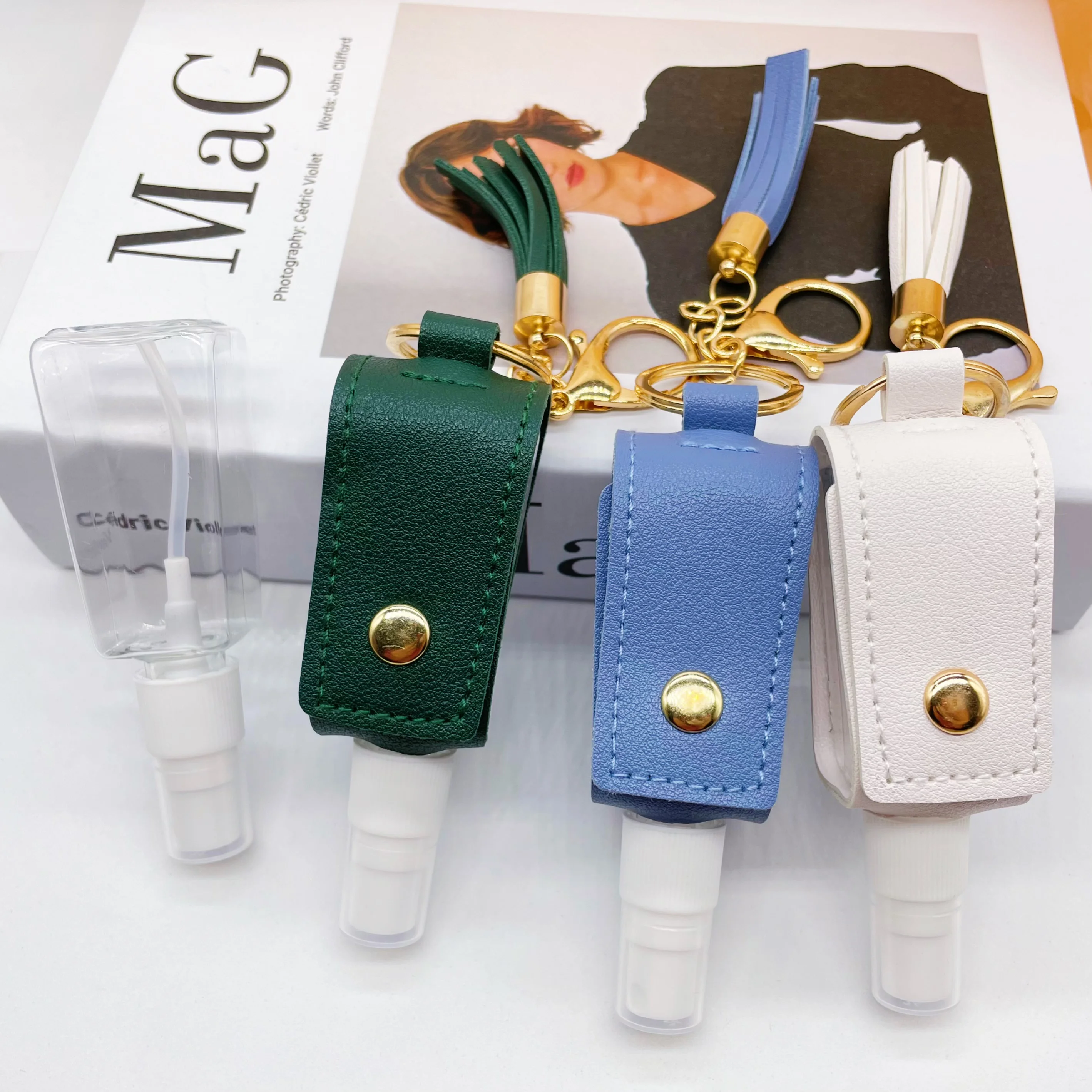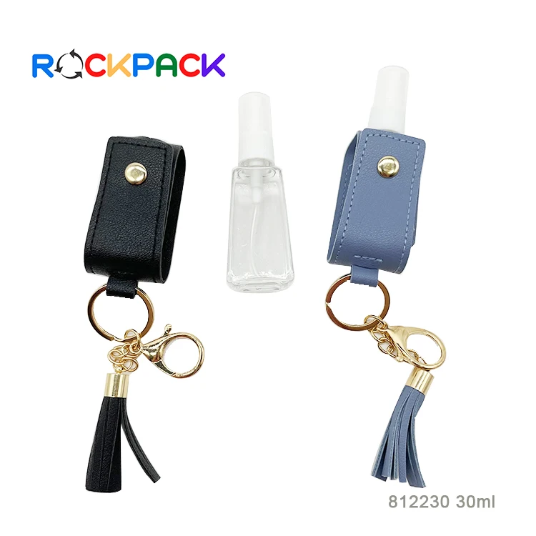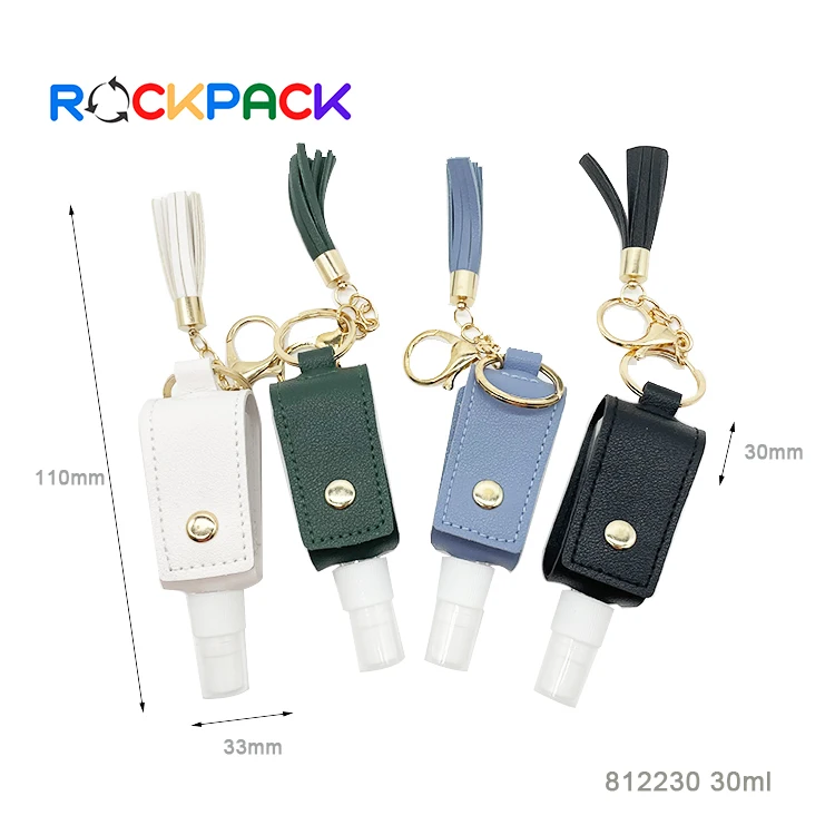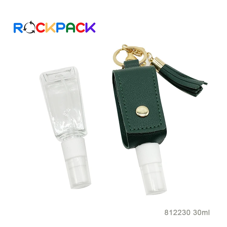 30ml Plastic Pocket gel Alcohol Disinfection pet spray squeeze hand sanitizer bottle with flip top cap leather cover