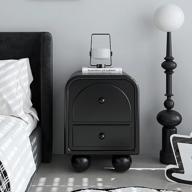 Modern minimalist wooden bedside table, bedroom furniture, living room rounded storage cabinet, suitable for families or hotels