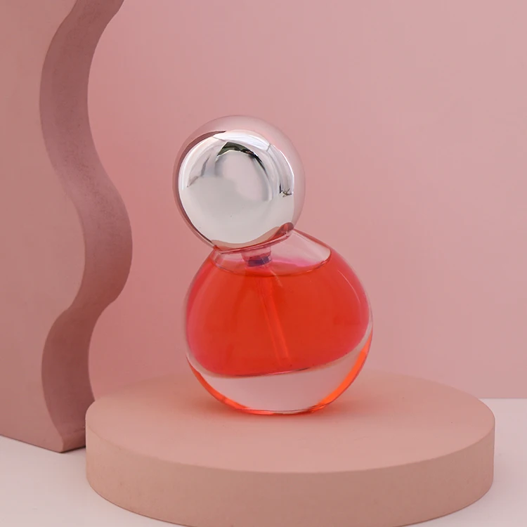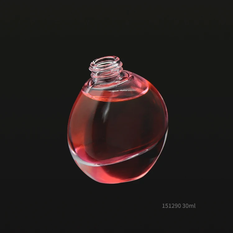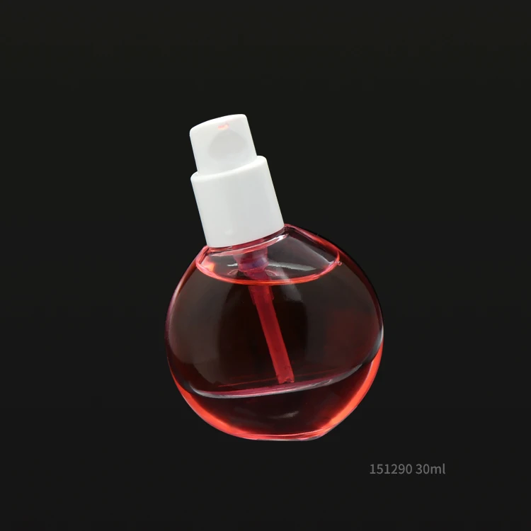 Special round crooked 30ml glass perfume spray pump bottle with silver cap