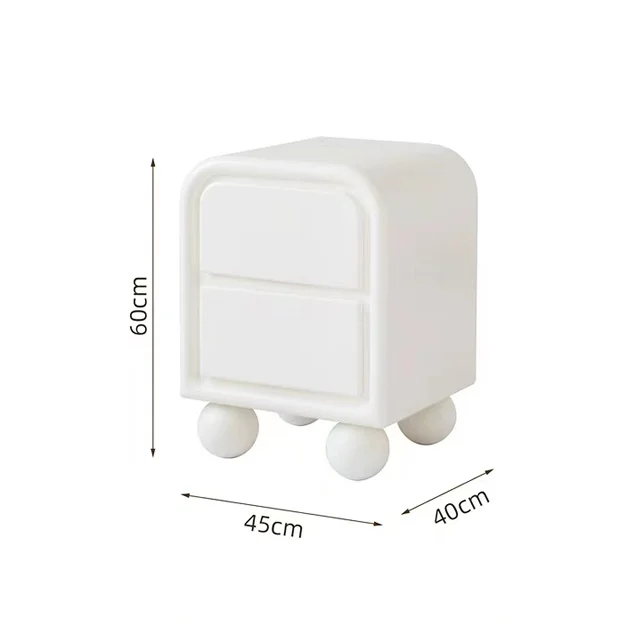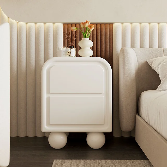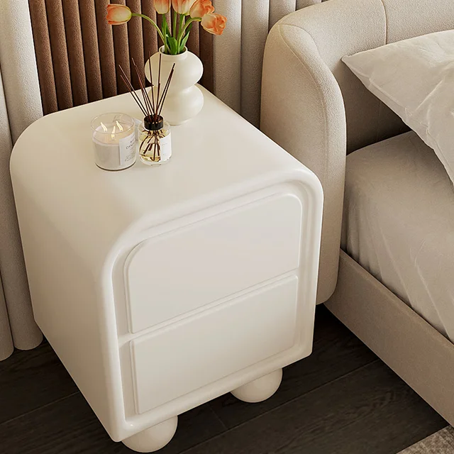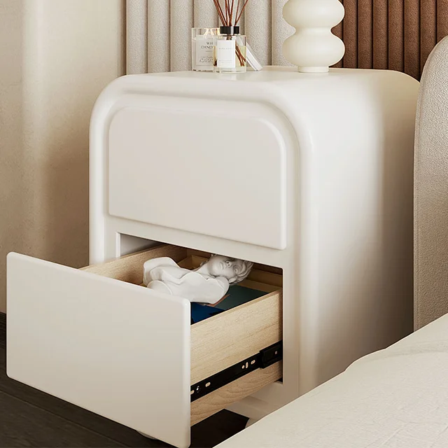 Nordic Minimalist White Wooden Bedside Table, Modern Bedroom Furniture, Living Room Cream Wind Rounded Storage Cabinet, Suitable for Families or Hotels
