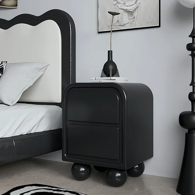 Modern minimalist wooden bedside table, bedroom furniture, living room rounded storage cabinet, suitable for families or hotels
