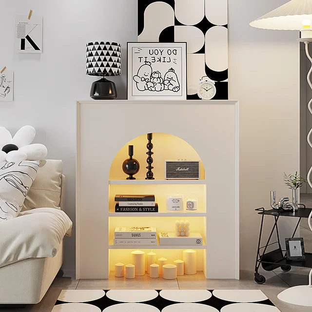 Modern lighting arched fireplace cabinet wooden home furniture, suitable for hotel, living room, bedroom decoration