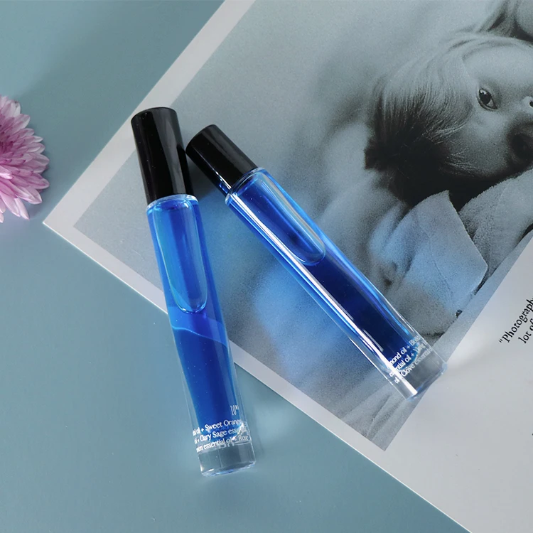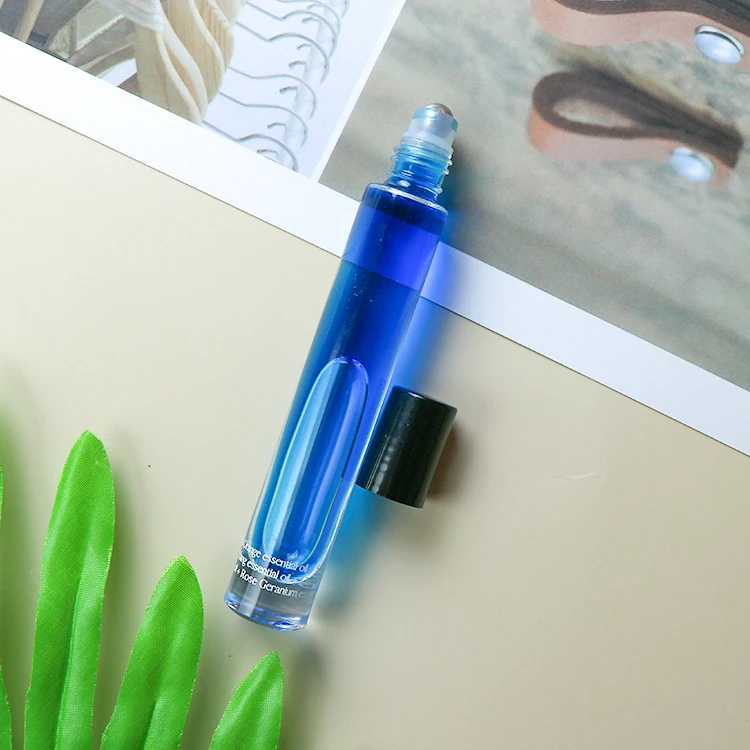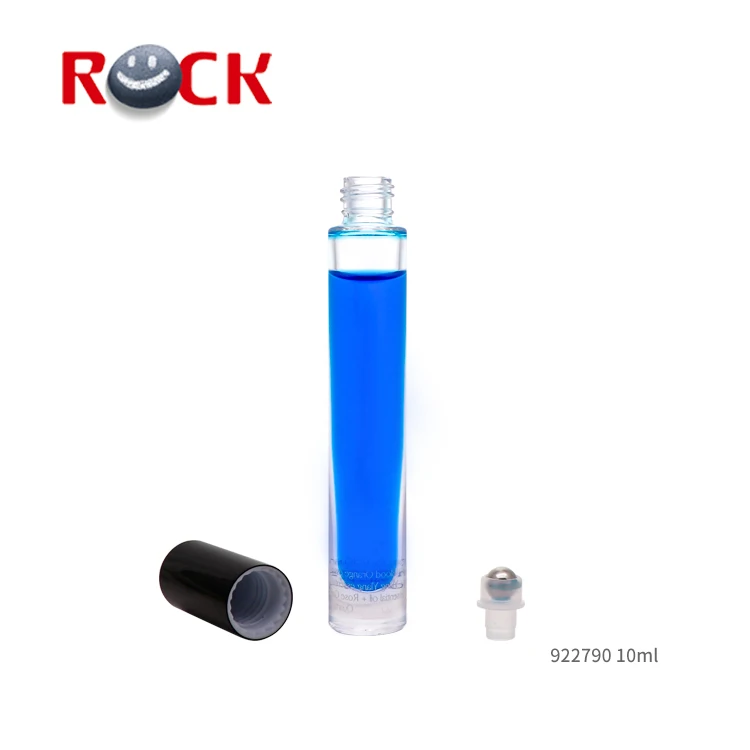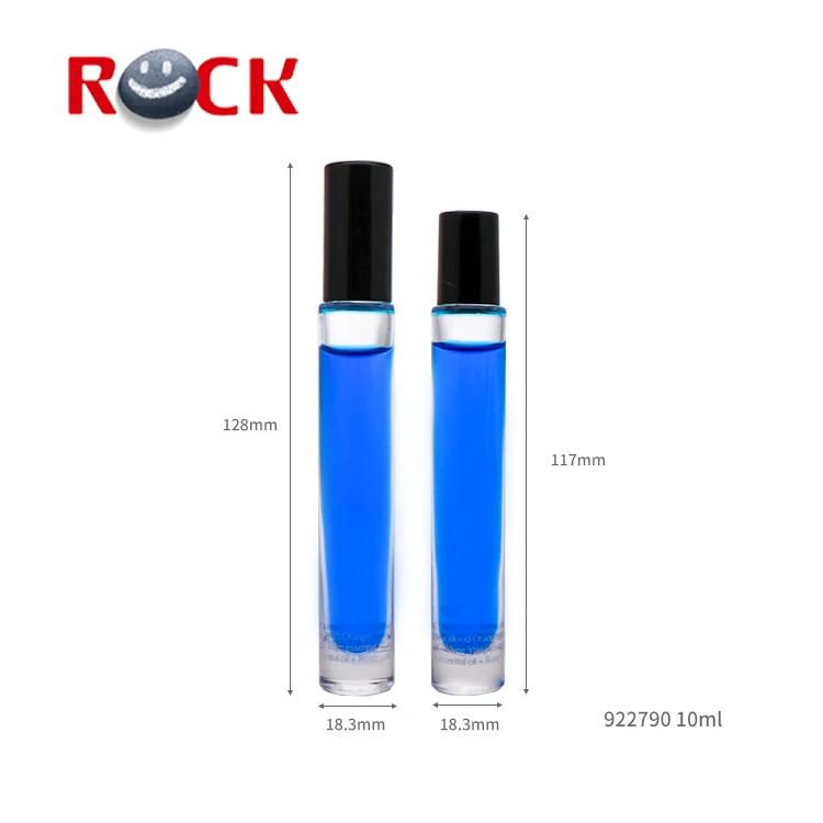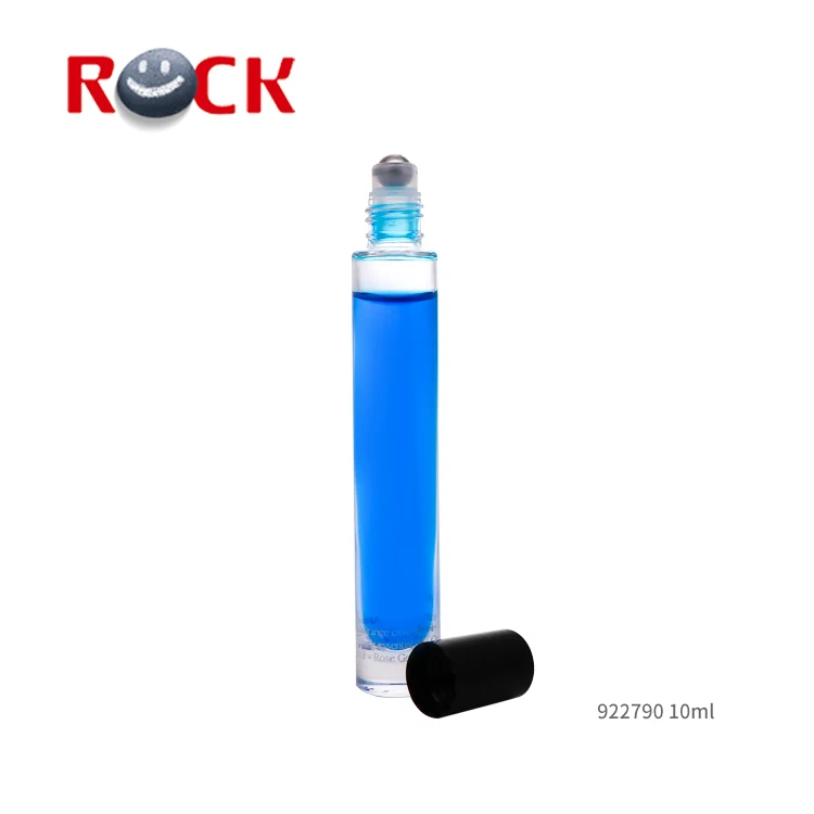 10ML Slender Thick Bottom Glass Roll On Bottle With Metal Roller ball And Black Plastic Cap