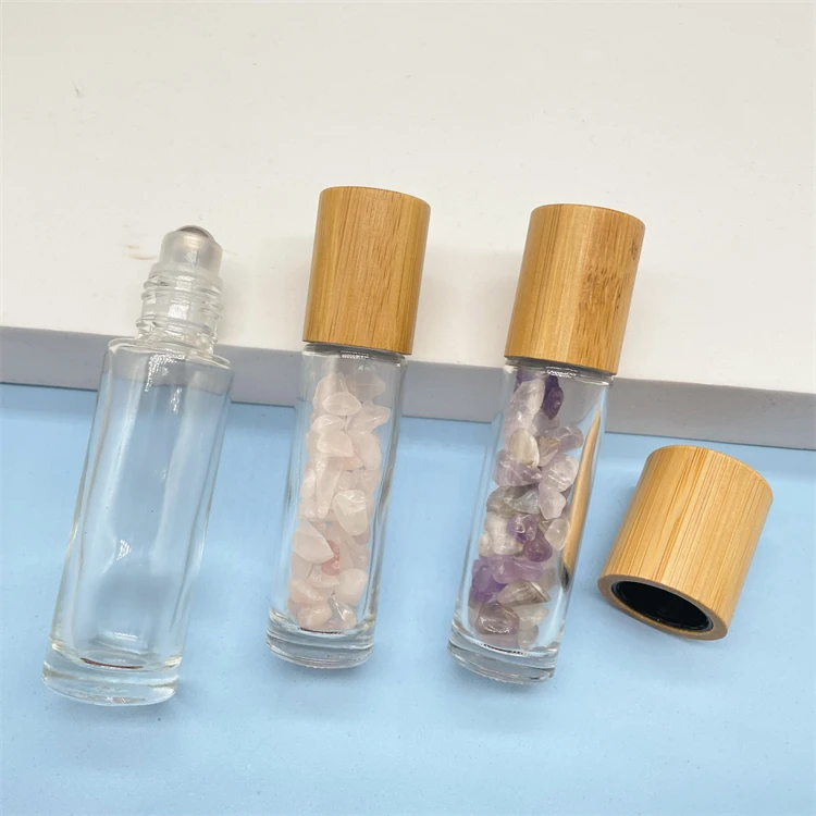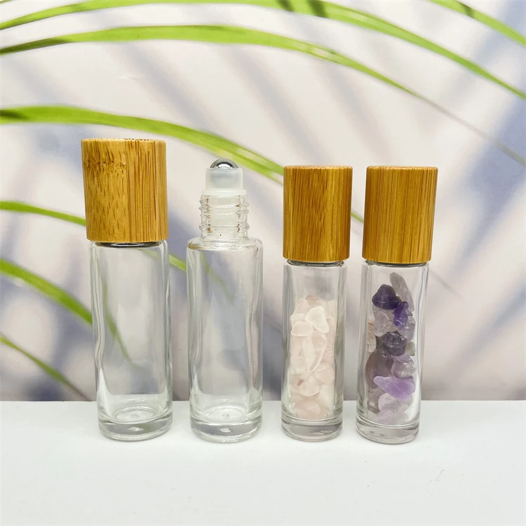 Logo Custom 10ml 15ml Glass Roll On Bottles With Stainless Steel Roller Ball And Bamboo lids