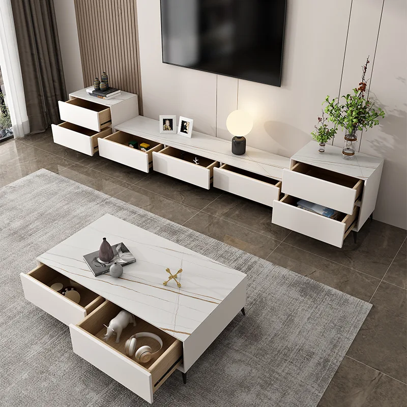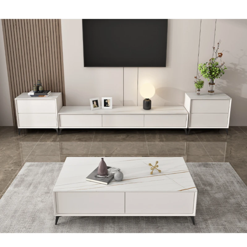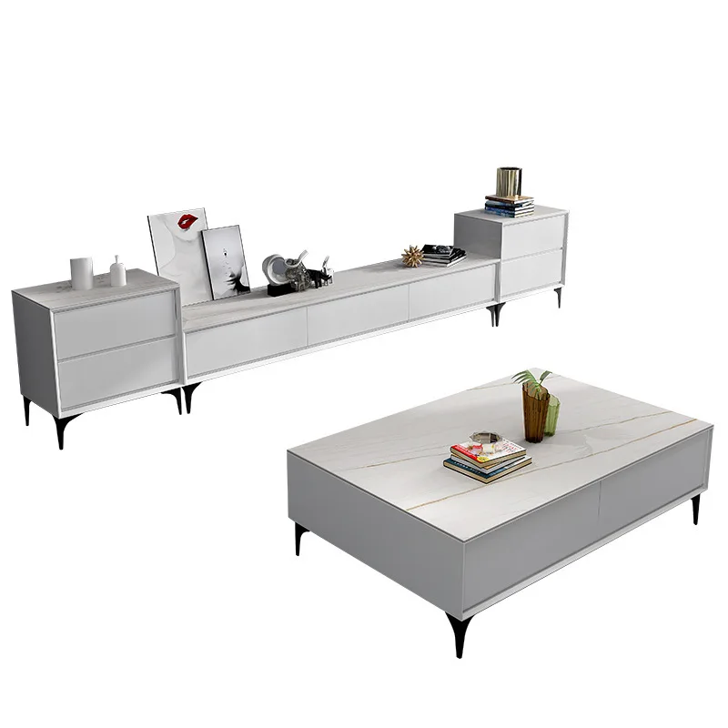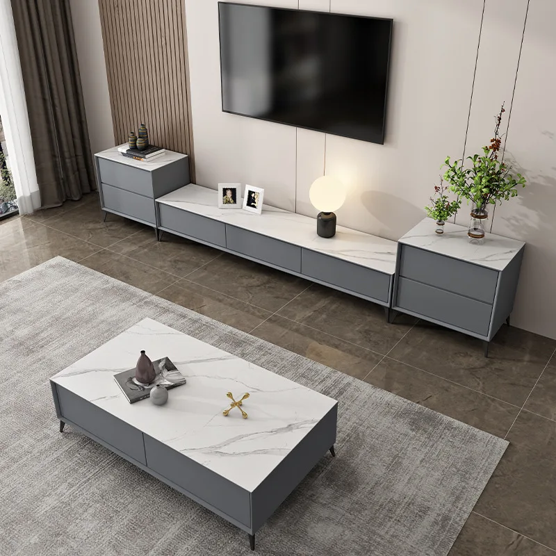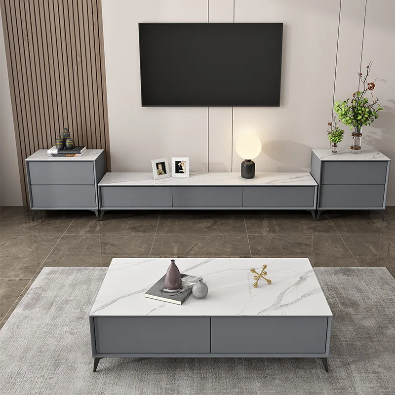 Coffee Table set living room luxury rock panel coffee table TV cabinet Italian small living room solid wood grey tea table