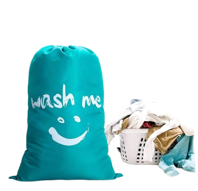 custom Travel nylon portable hotel wash nylon fold big drawstring laundry bags with logo