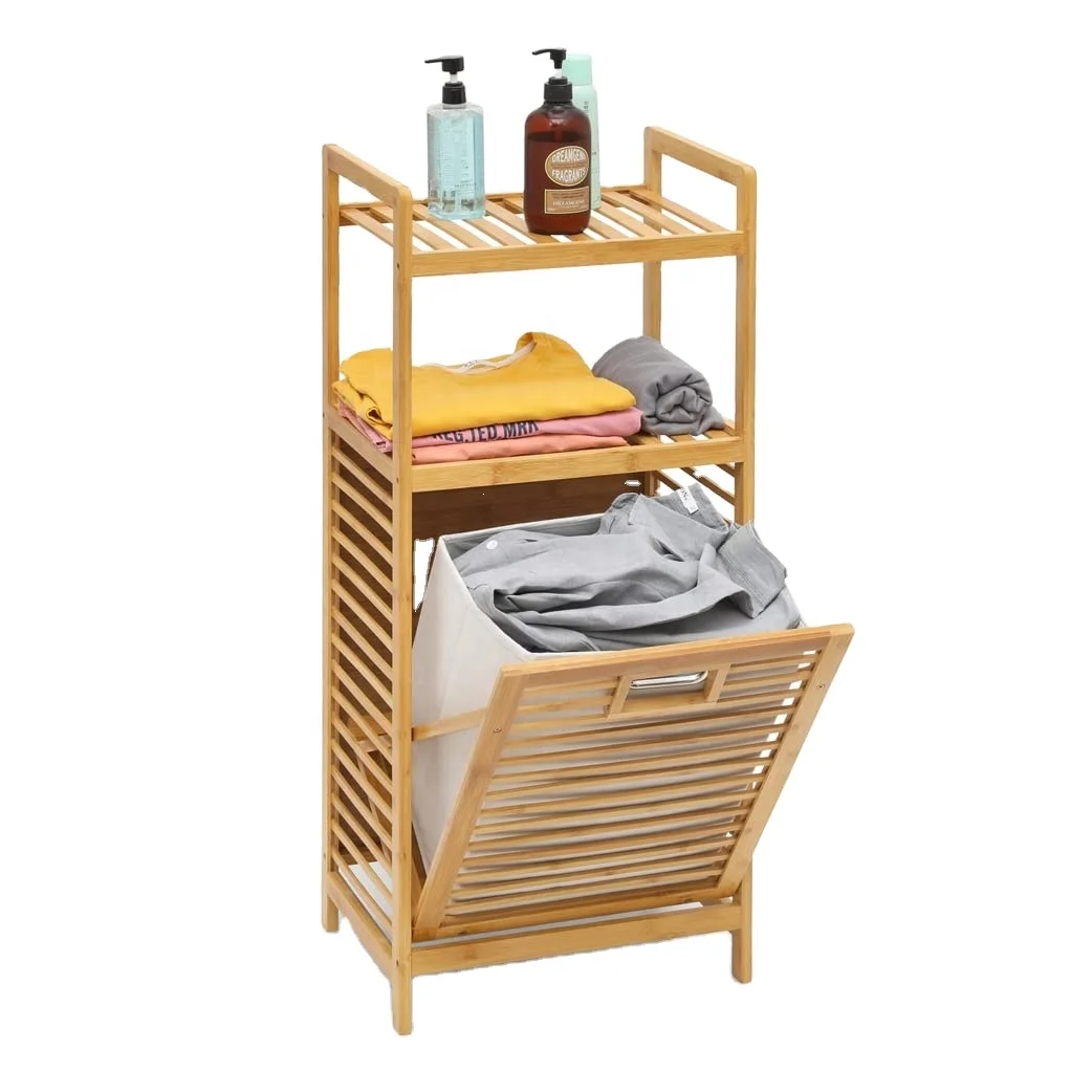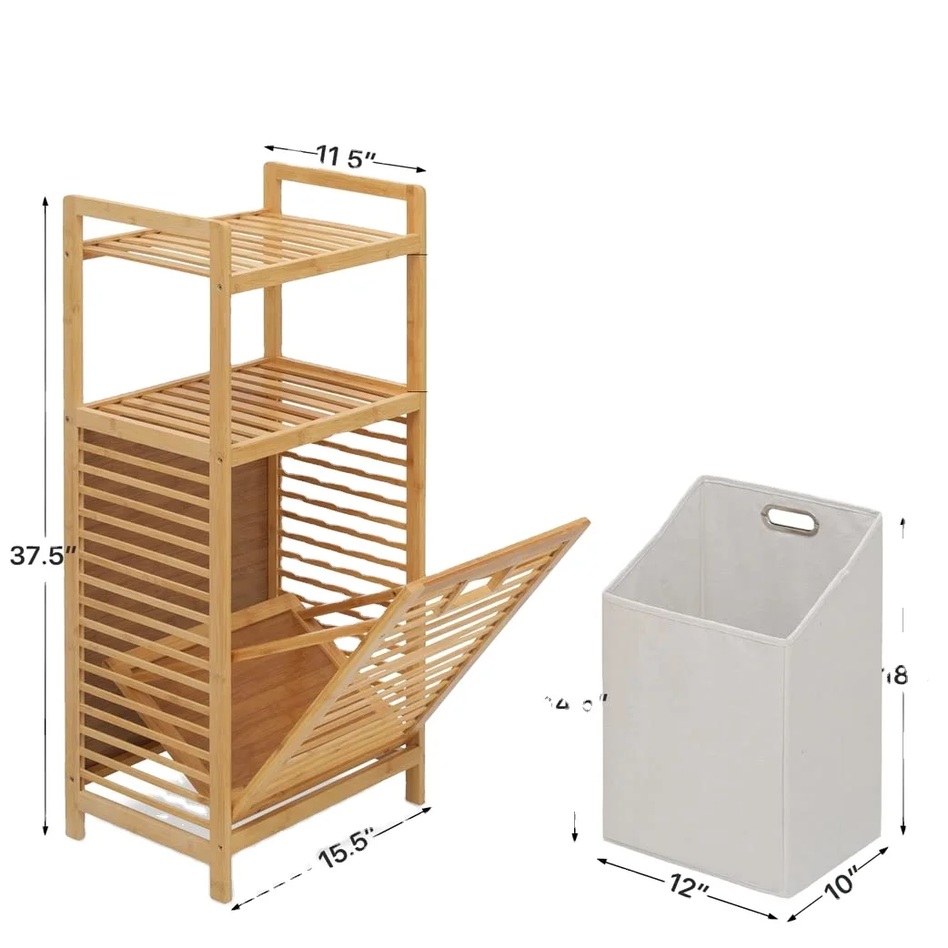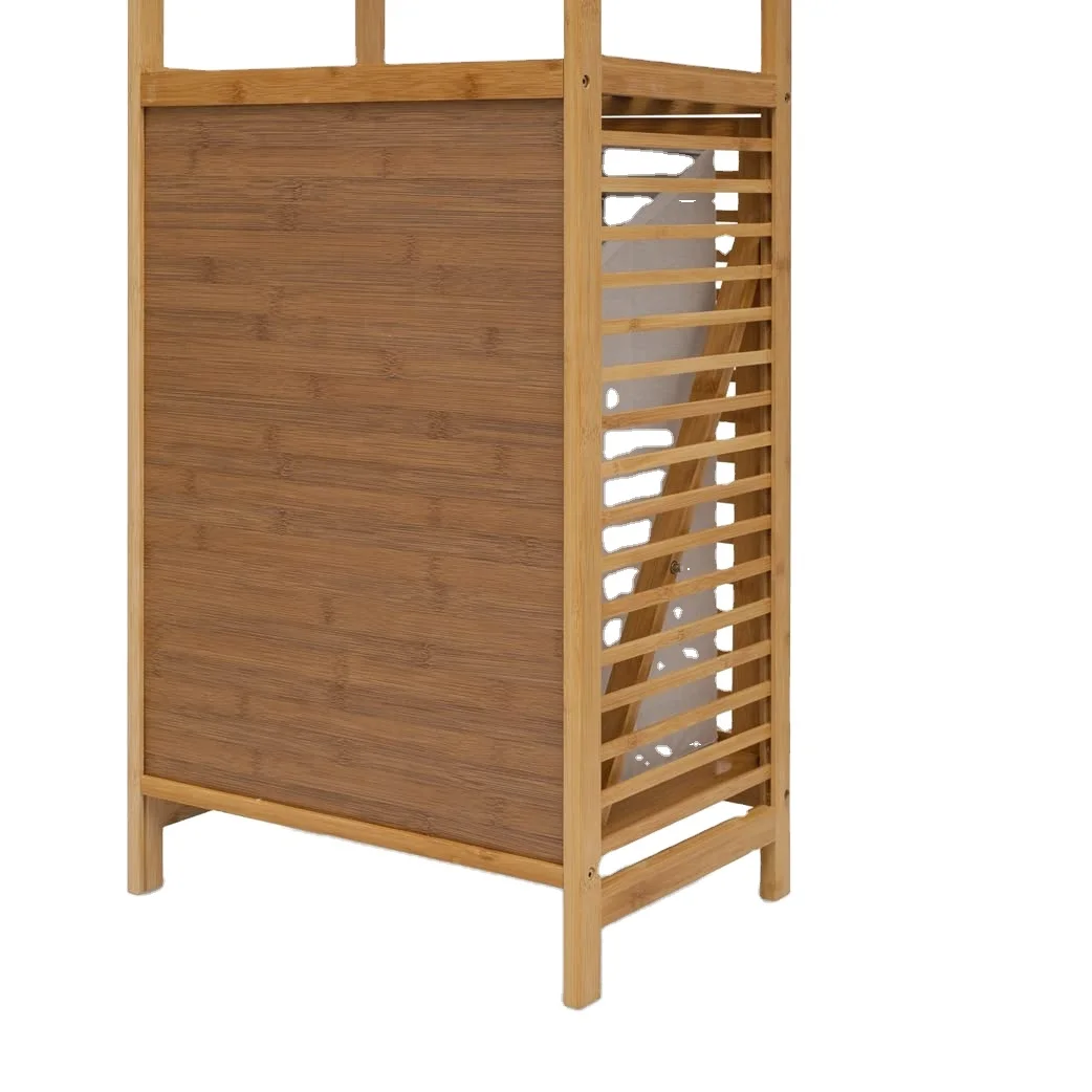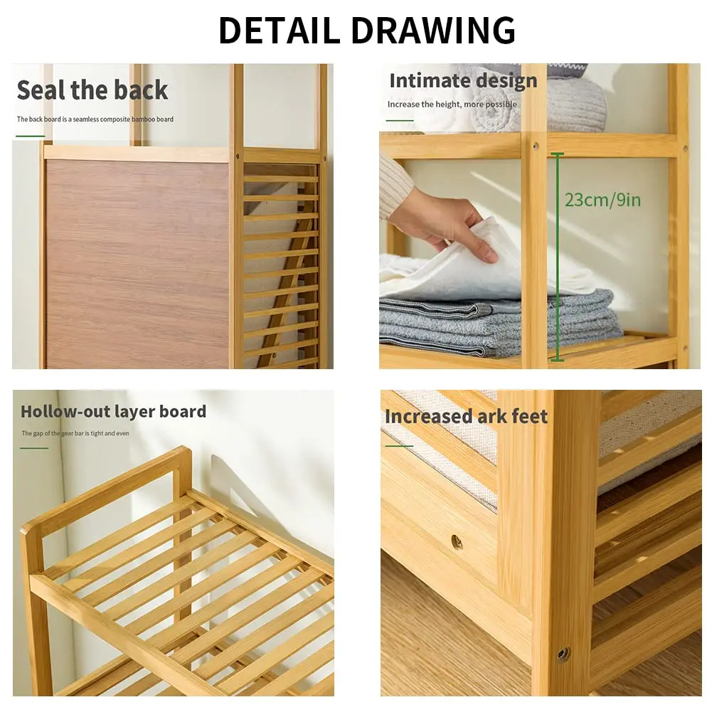 bamboo Side Table Storage Organizer laundry Basket Shelf Bookshelf Wood Adjustable Cabinet Foldable Laundry Linen Hamper Shelves