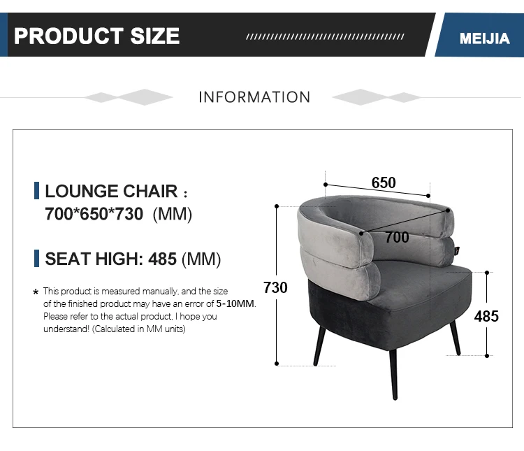 Name | First Class Quality Velvet Fabric One Seat Furniture Lounge Modern Chair Sofa |